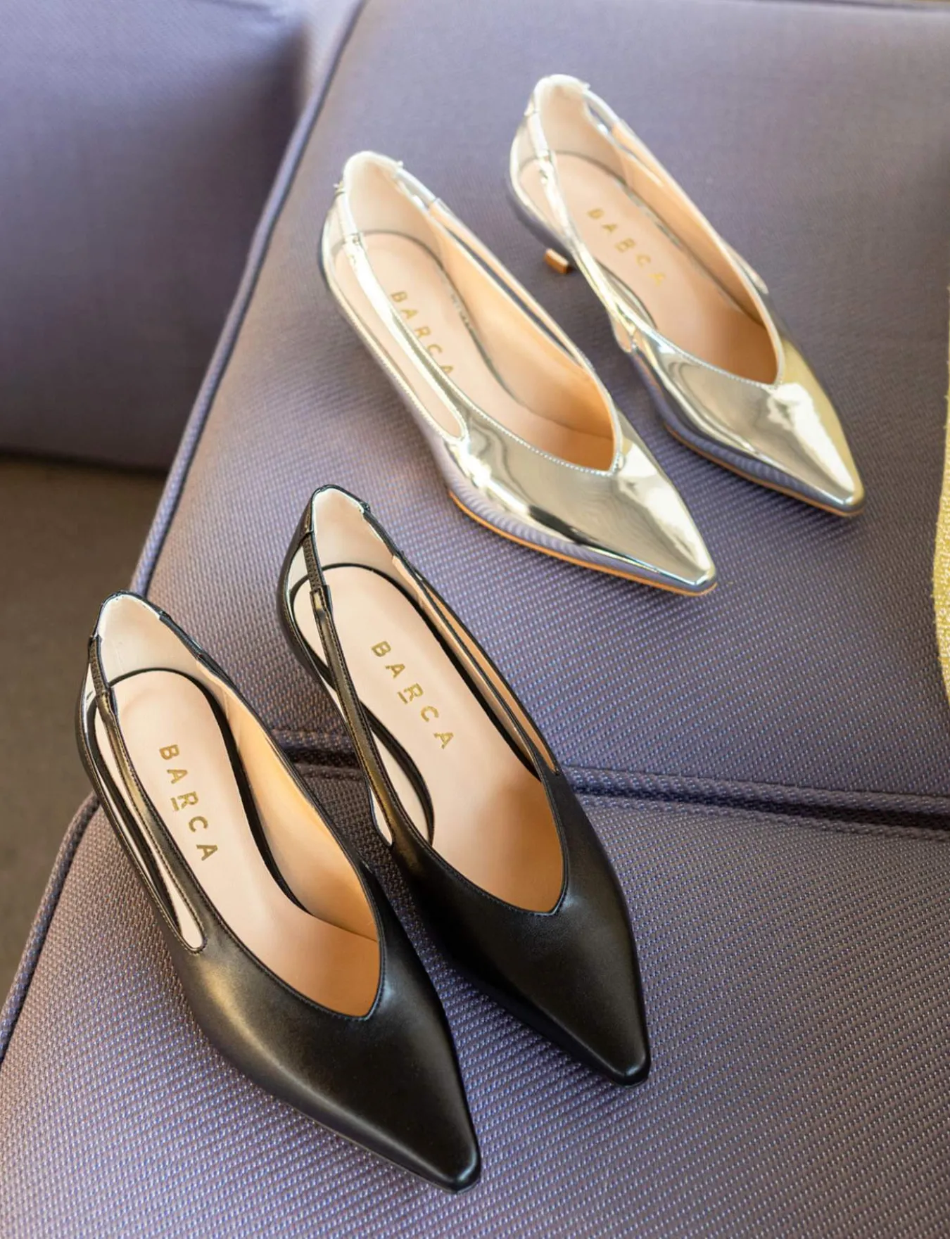 Decolte’ tacco 4 cm fondo in leggerissima gomma e soletto interno in vera pelle. Tomaia in morbida pelle, punta sfilata, scollo a ‘V’, lati aperti e nuovissimo tacco rocchetto per un look che ti farà notare.