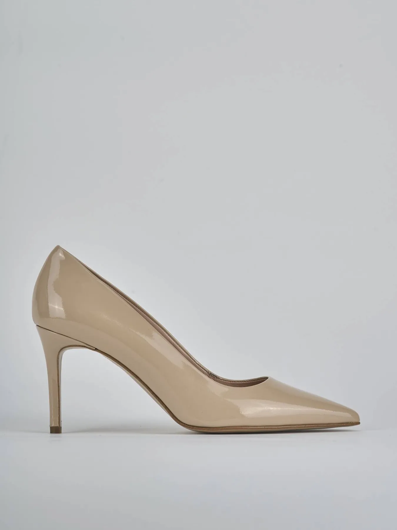 Decolte’ tacco 7 cm fondo in cuoio e soletto interno in vera pelle. Tomaia in morbida pelle effetto verniciato, punta sfilata, scollo squadrato, liscio e tacco fino dritto. Dalle linee semplici, versatile e che dura nel tempo.