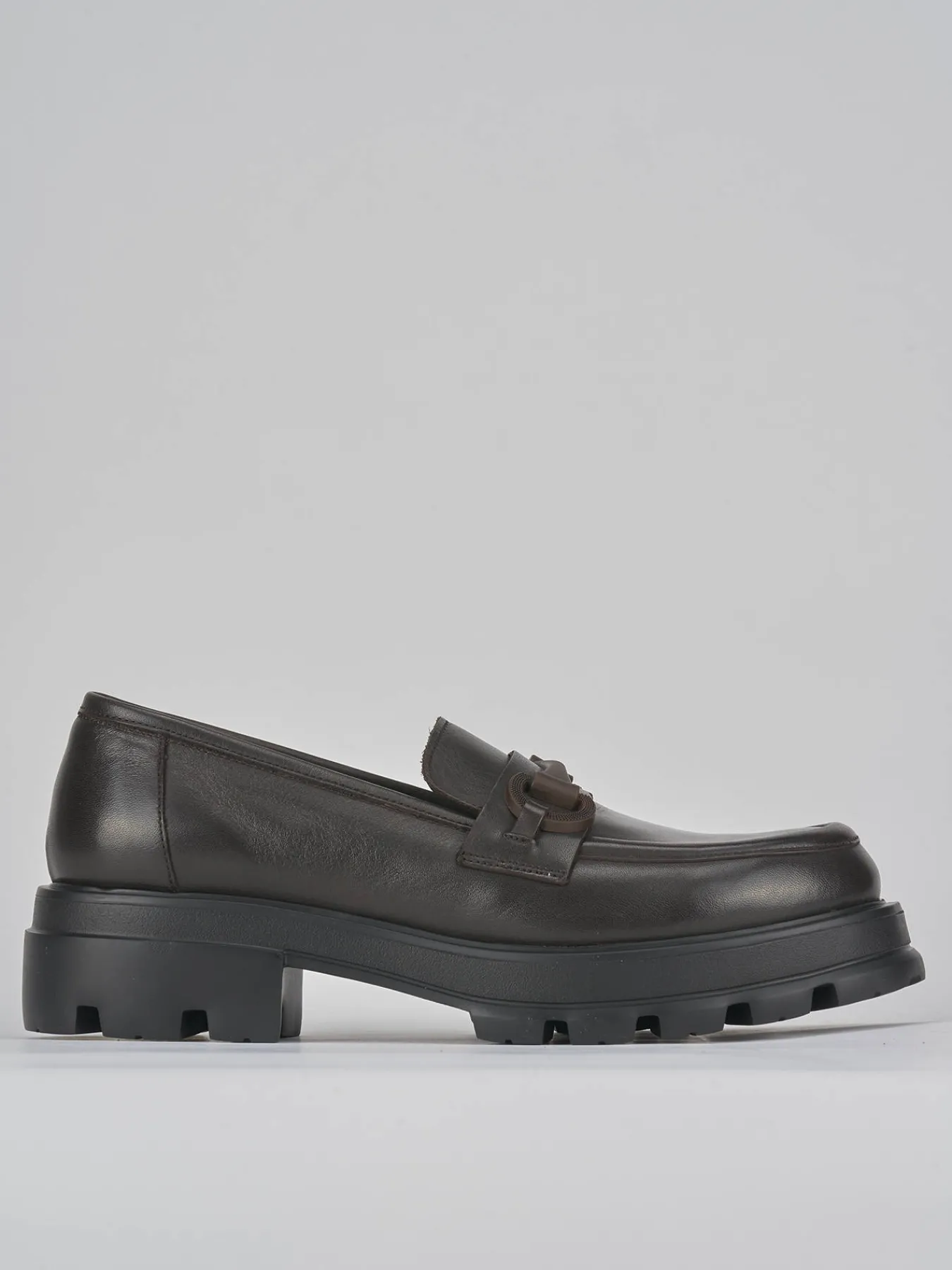 Mocassino tacco 2 cm fondo in gomma e soletto interno in vera pelle. tomaia in morbida pelle, punta leggermente squadrata, cuciture in rilievo, morsetto in tinta opaco. fondo extra light per il massimo del comfort.