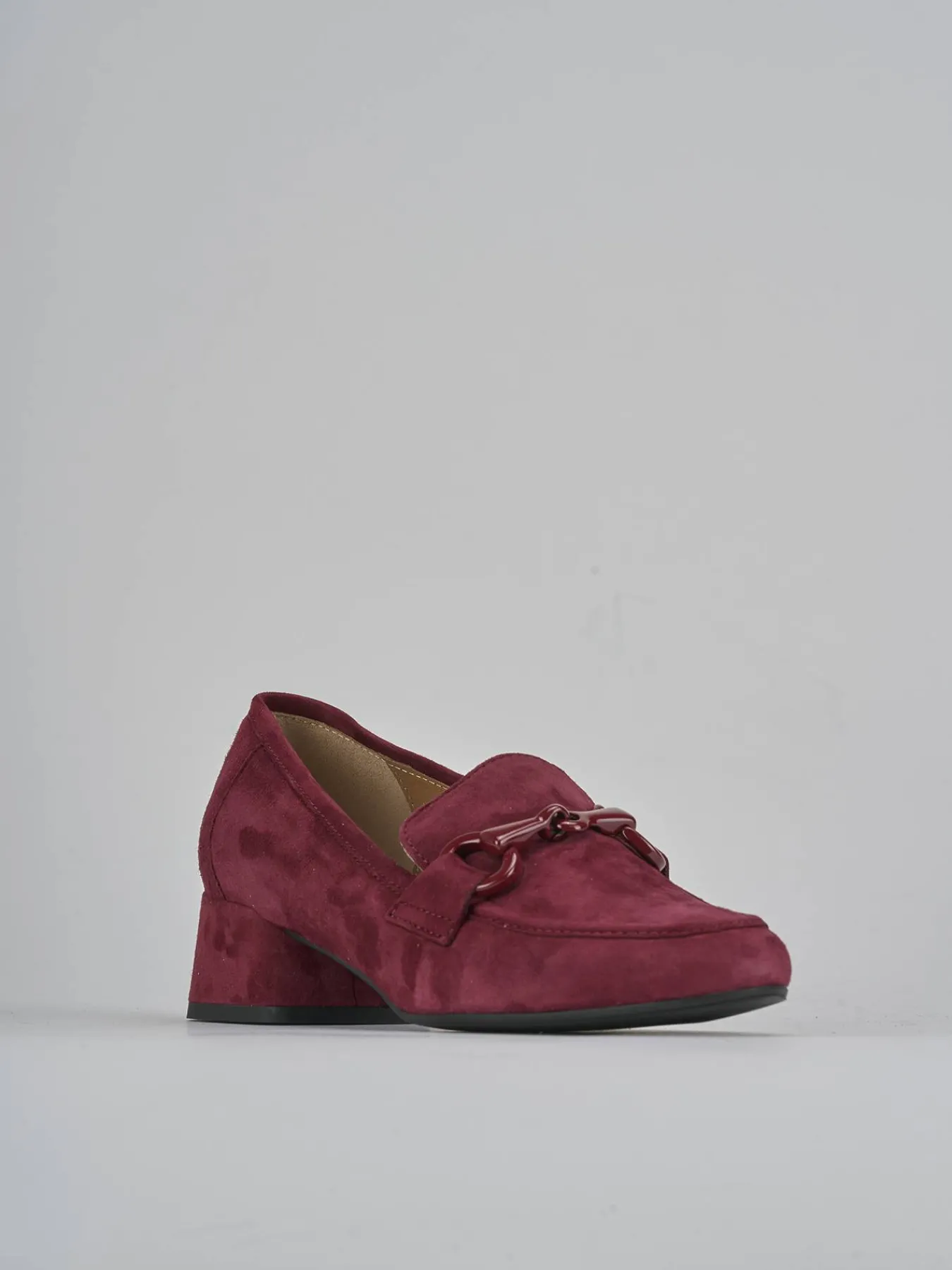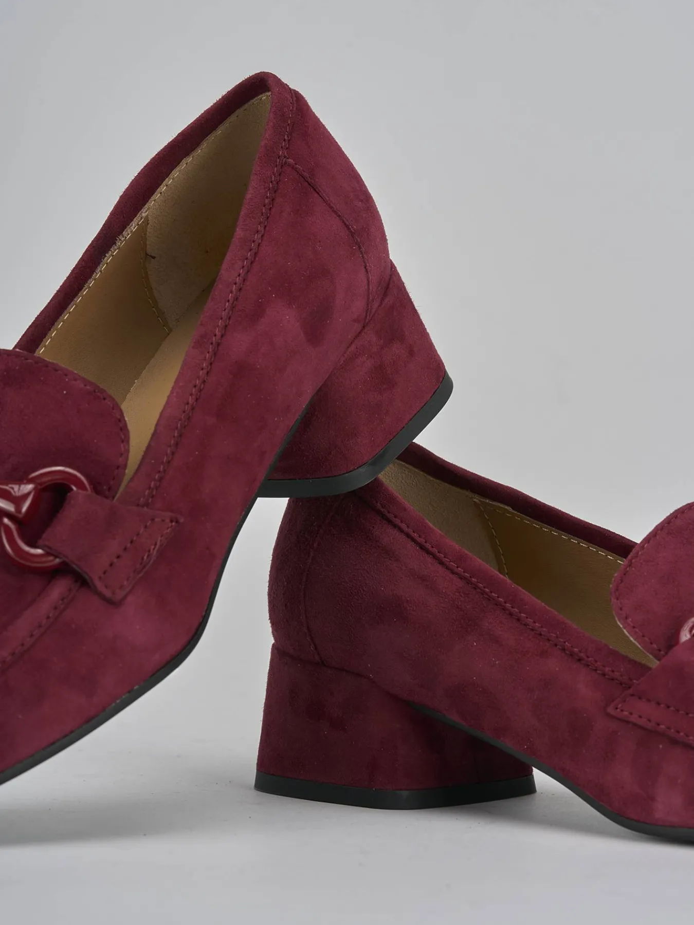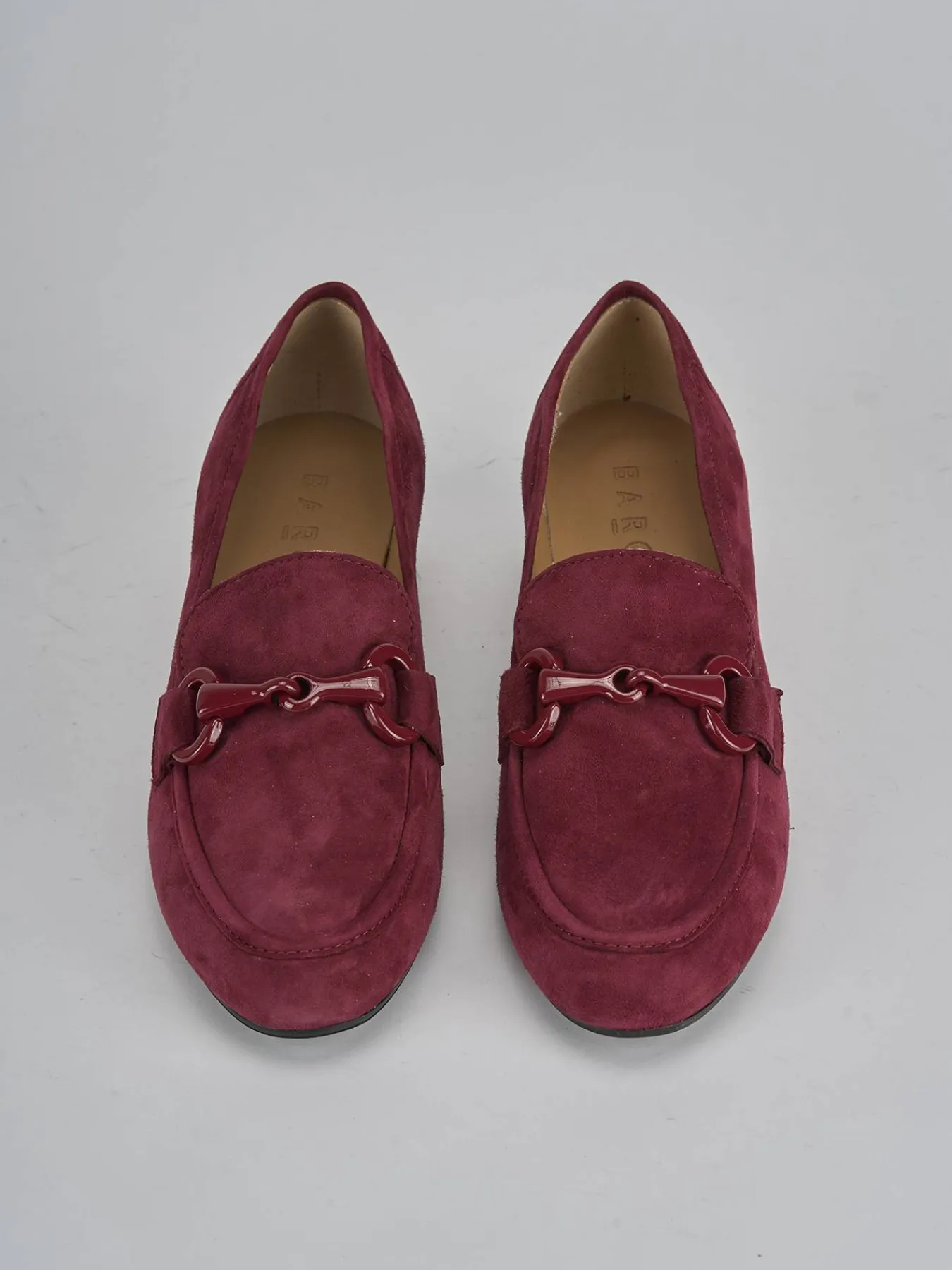 Realizzati in morbido camoscio bordò, questi mocassini si distinguono per la loro punta affusolata e le cuciture a mano a vista, che aggiungono un tocco di artigianalità.