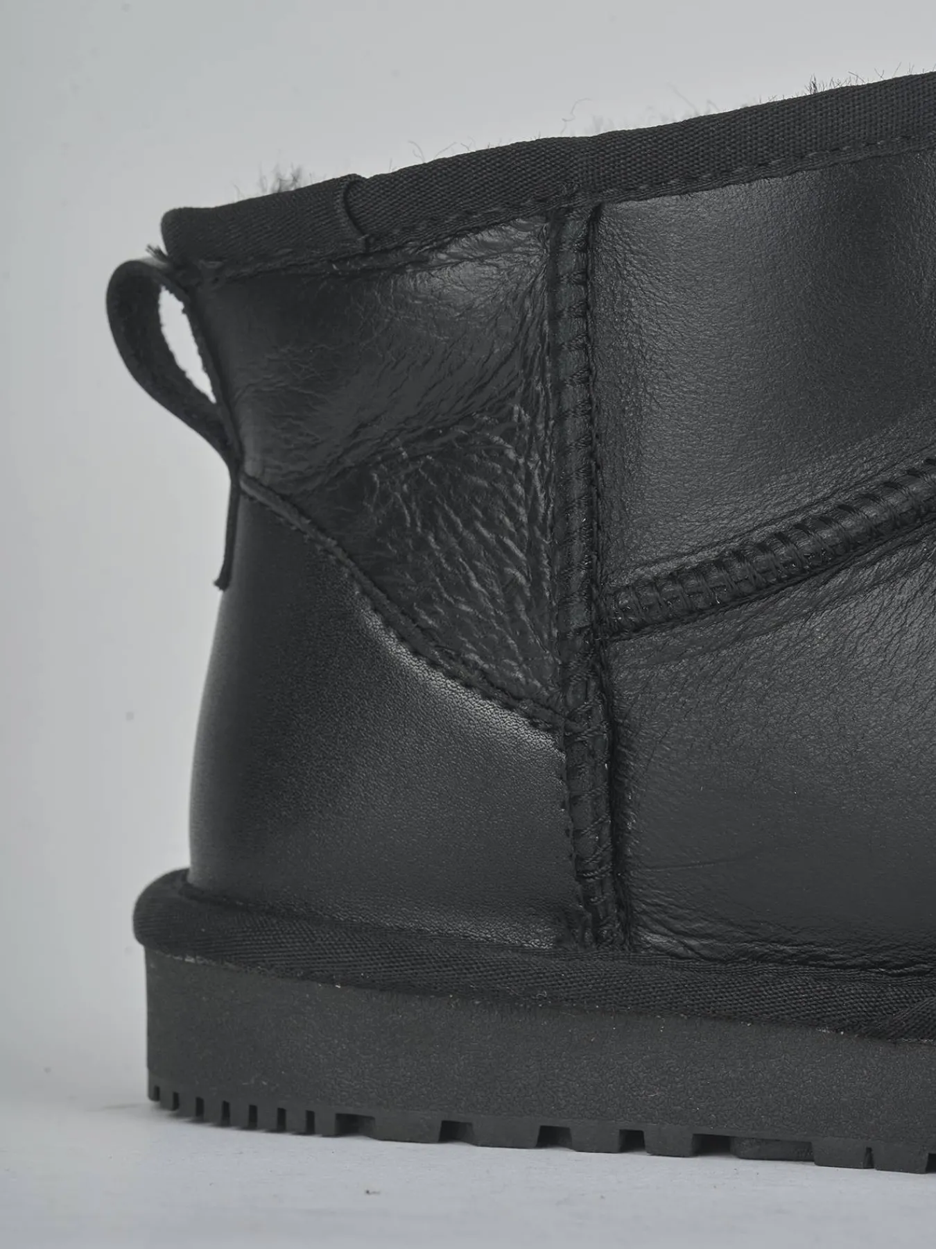 Il fondo in gomma seghettato assicura una presa sicura ad ogni passo, mentre il soletto interno in vero montone garantisce una calzata confortevole anche nelle giornate più fredde.