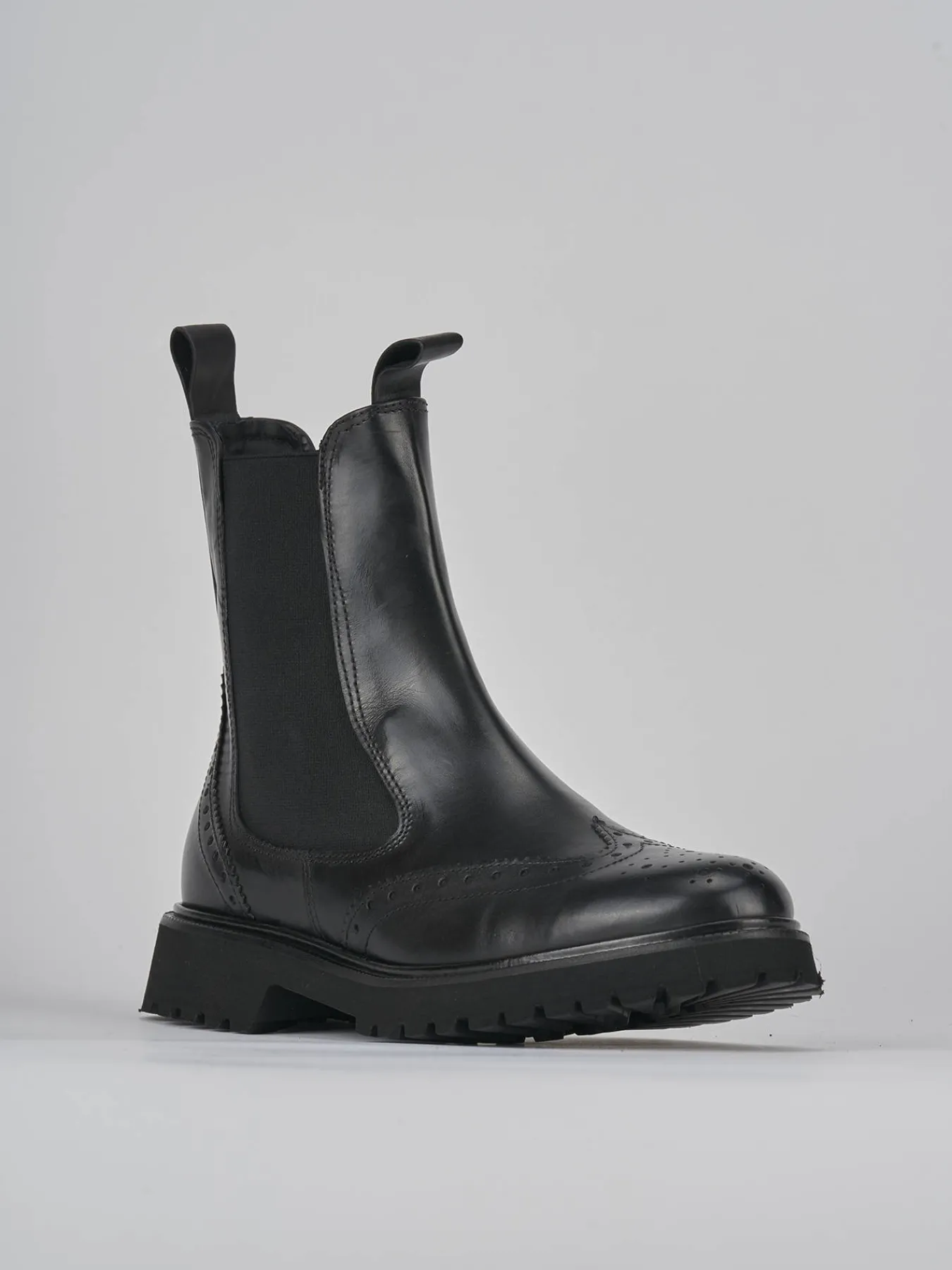 Stivaletto beatles tacco 2 cm fondo in gomma e soletto interno in vera pelle. Tomaia in morbida pelle, punta tonda, raffinata lavorazione inglese, tessuto elasticizzato ai lati e fondo extra light per un look cool.