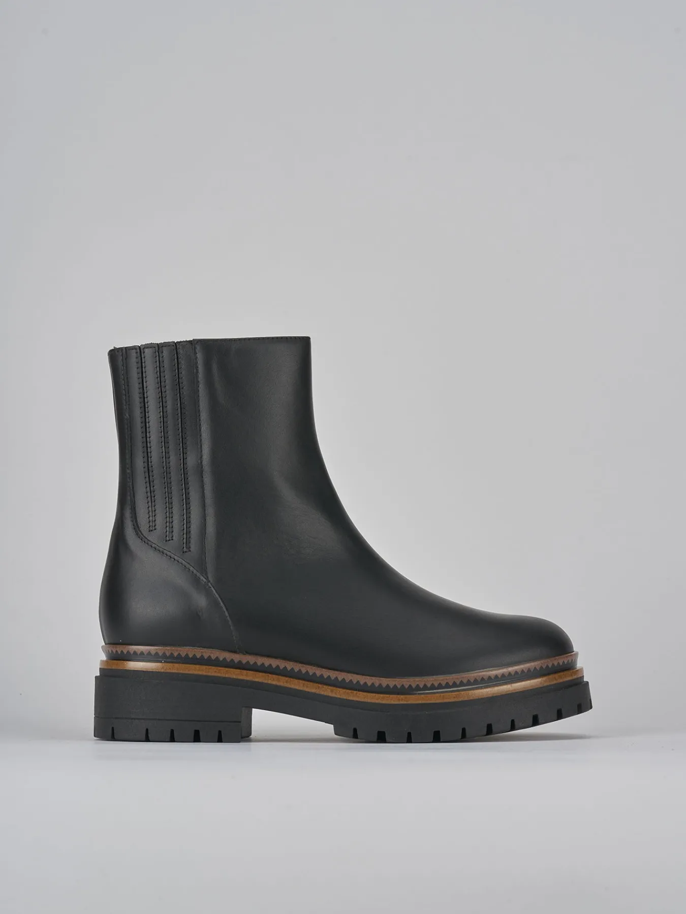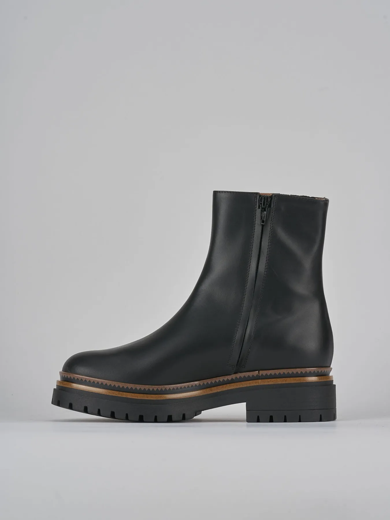 Stivaletto tacco 2.5 cm fondo in gomma e soletto interno in vera pelle. tomaia in morbida pelle nappata, punta tonda, comoda cerniera laterale, cool design sul tallone e tocchi bicolor sulla tomaia e sul fondo. perfetto con dei jeans o una gonna ampia.