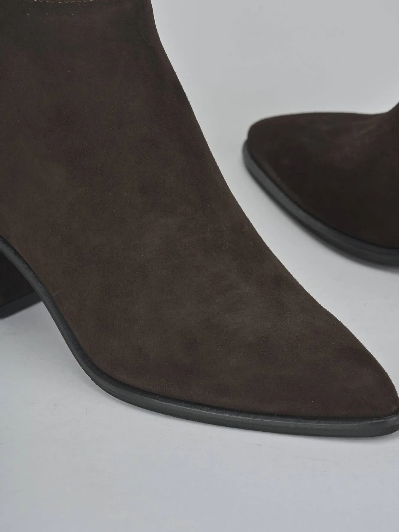La tomaia in morbida pelle scamosciata offre un look sofisticato, mentre la punta sfilata e le cuciture visibili aggiungono dettagli di stile unici.
