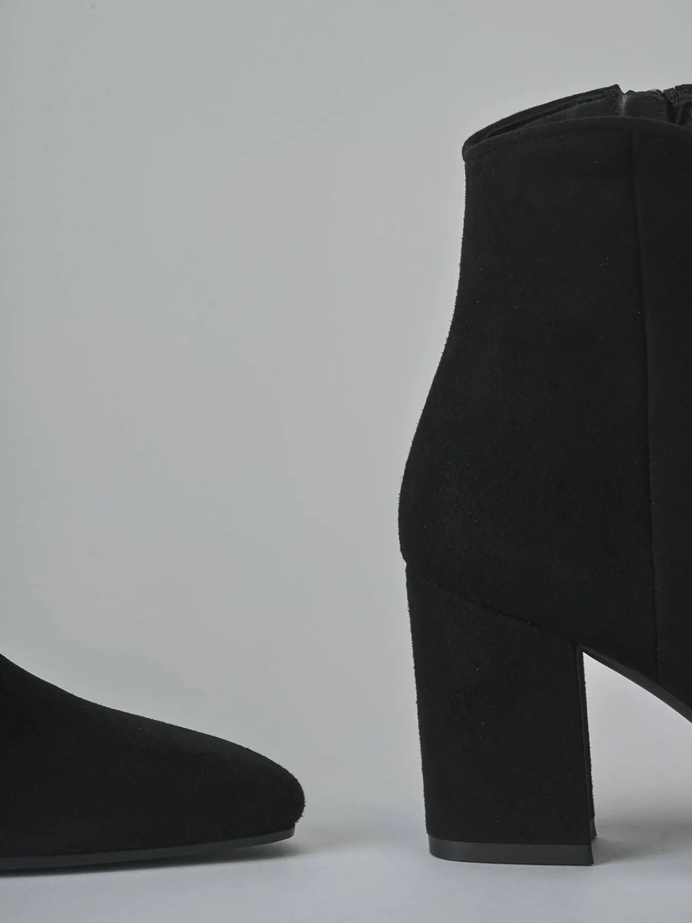 Realizzati in morbido camoscio, questi stivaletti presentano una punta sfilata e cuciture visibili a mano, dettagli che esaltano la qualità artigianale.