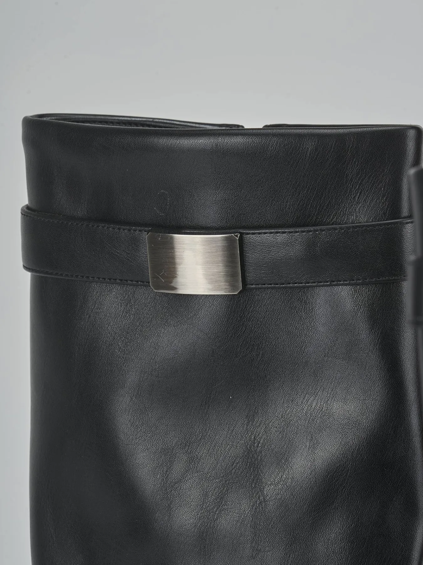 Le cuciture a mano sul gambale tubolare, che arriva appena sotto il ginocchio, aggiungono un tocco artigianale e raffinato.