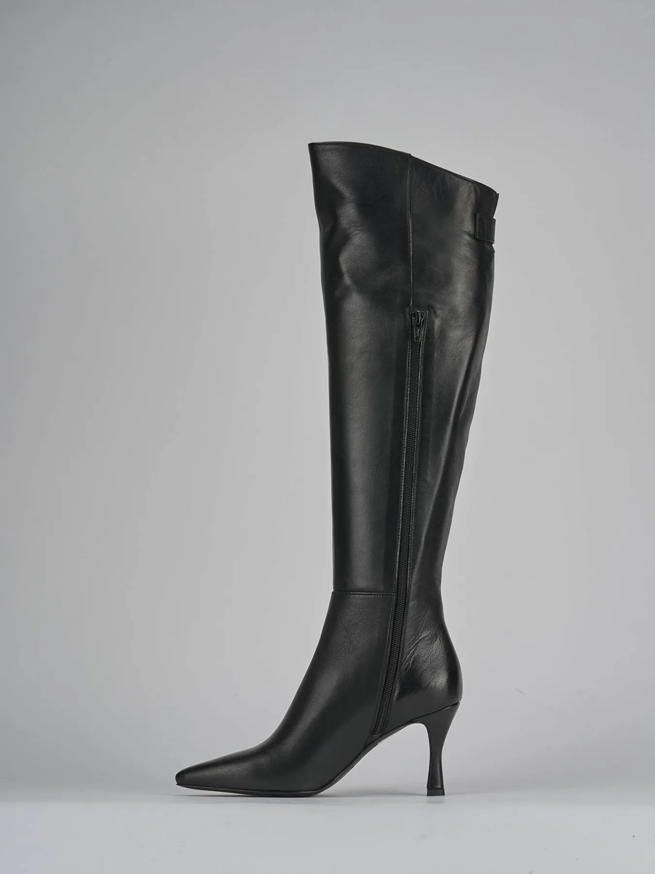 Il taglio obliquo del bordo del gambale e la comoda cerniera laterale assicurano una calzata perfetta.