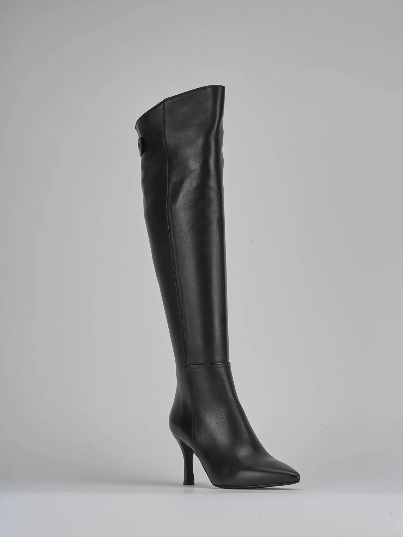 Le cuciture visibili sul gambale, che arriva appena sotto il ginocchio, donano un dettaglio sofisticato.