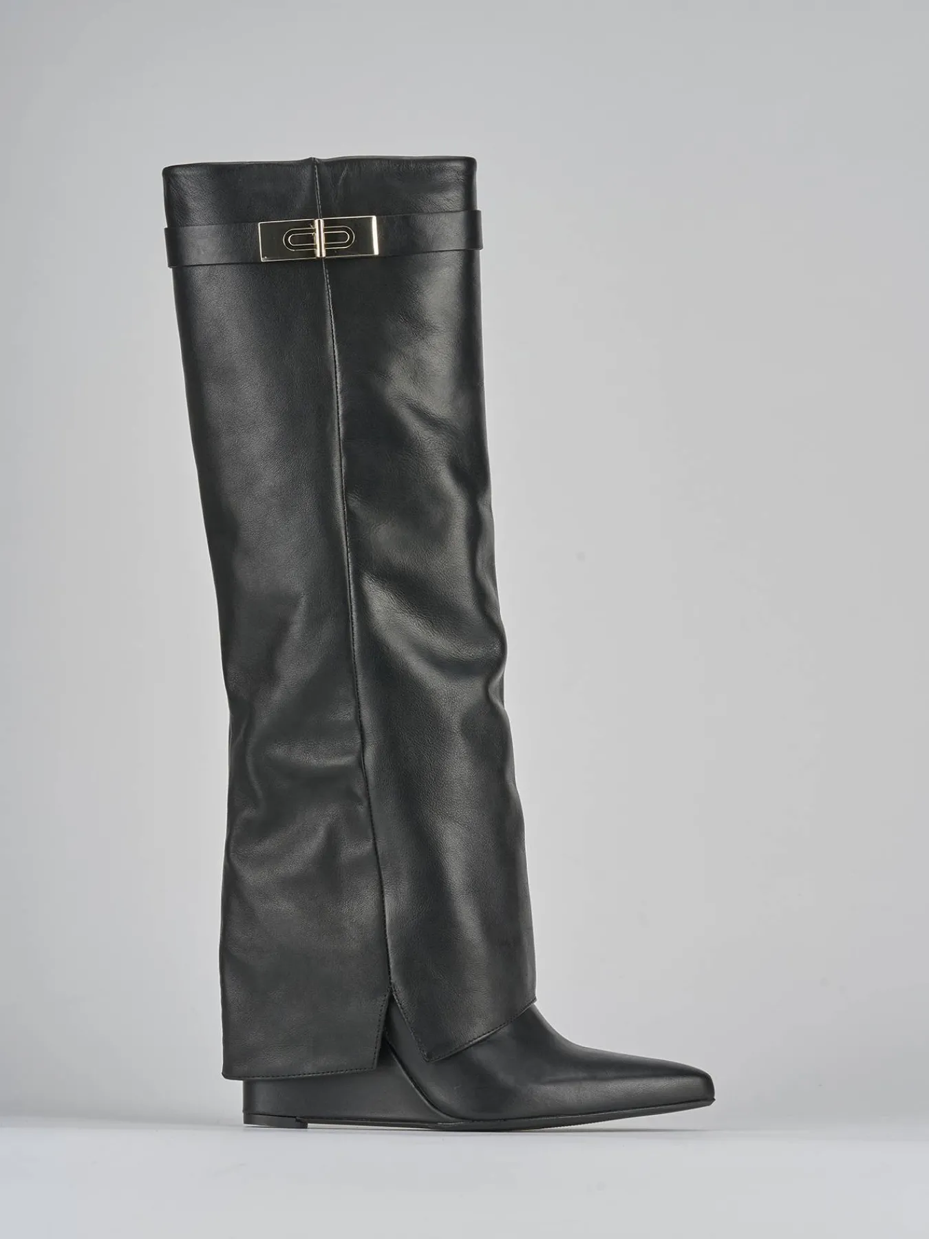 Il risvolto del gambale si ferma appena sotto il ginocchio, offrendo un design elegante e versatile.