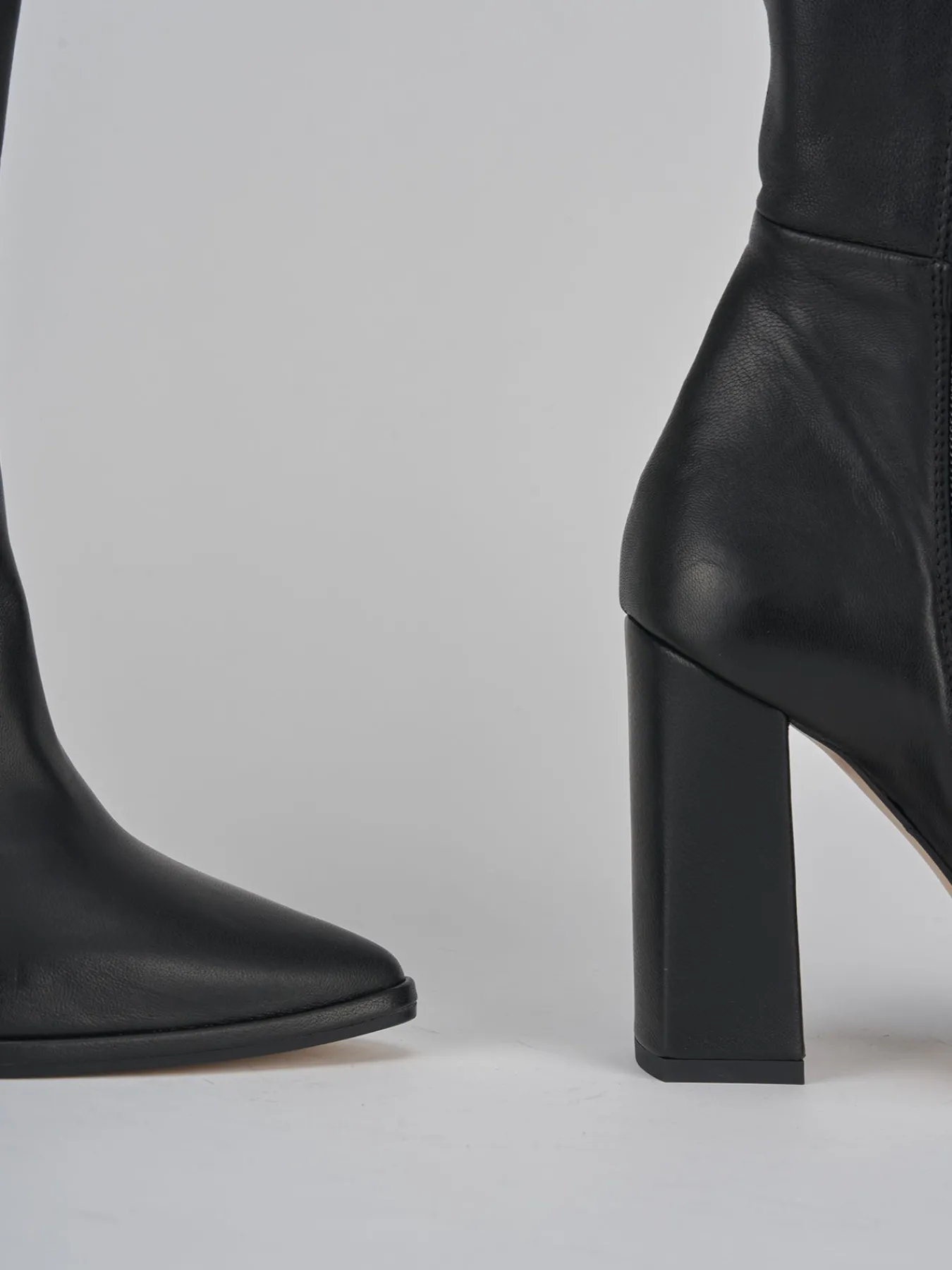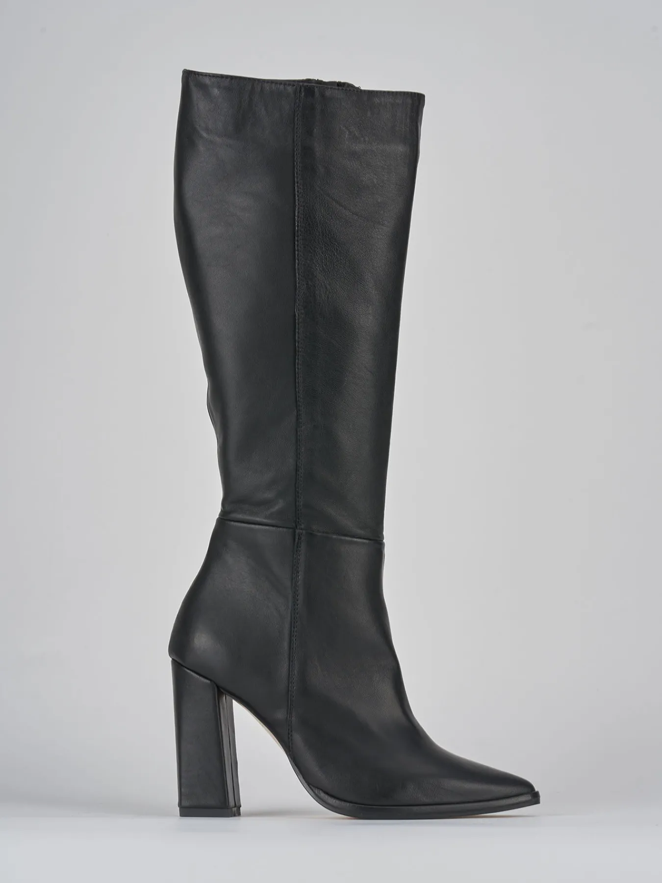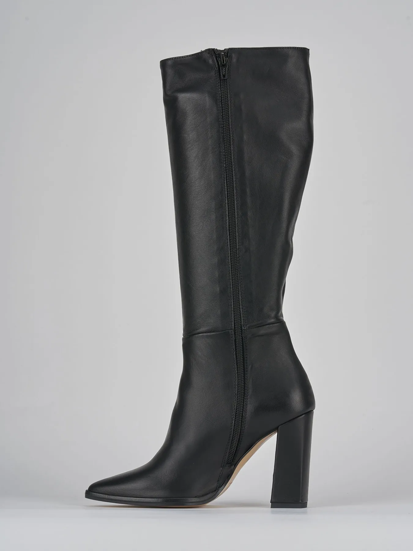 Il gambale foderato tubolare arriva appena sotto il ginocchio, esaltando la silhouette con grazia.