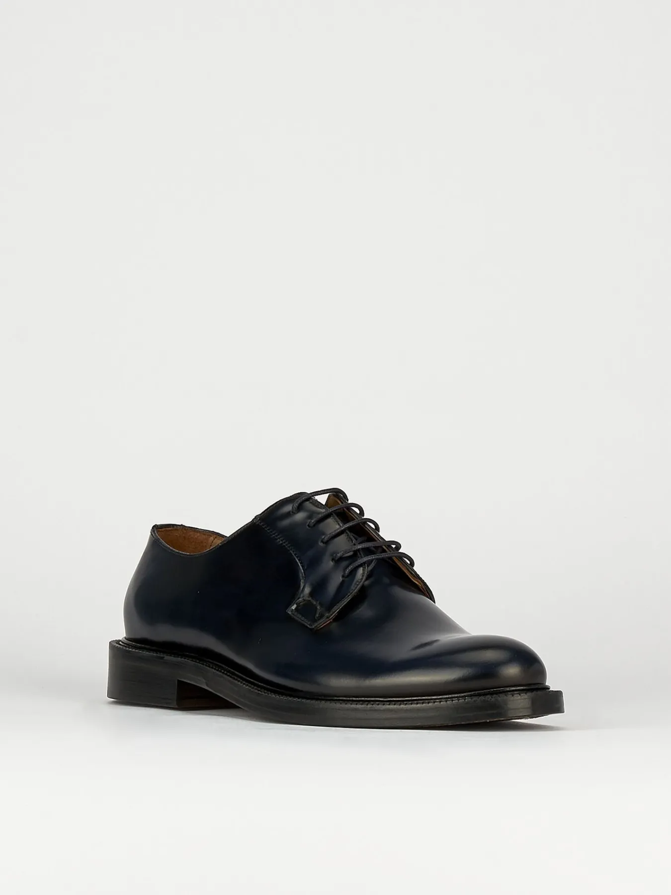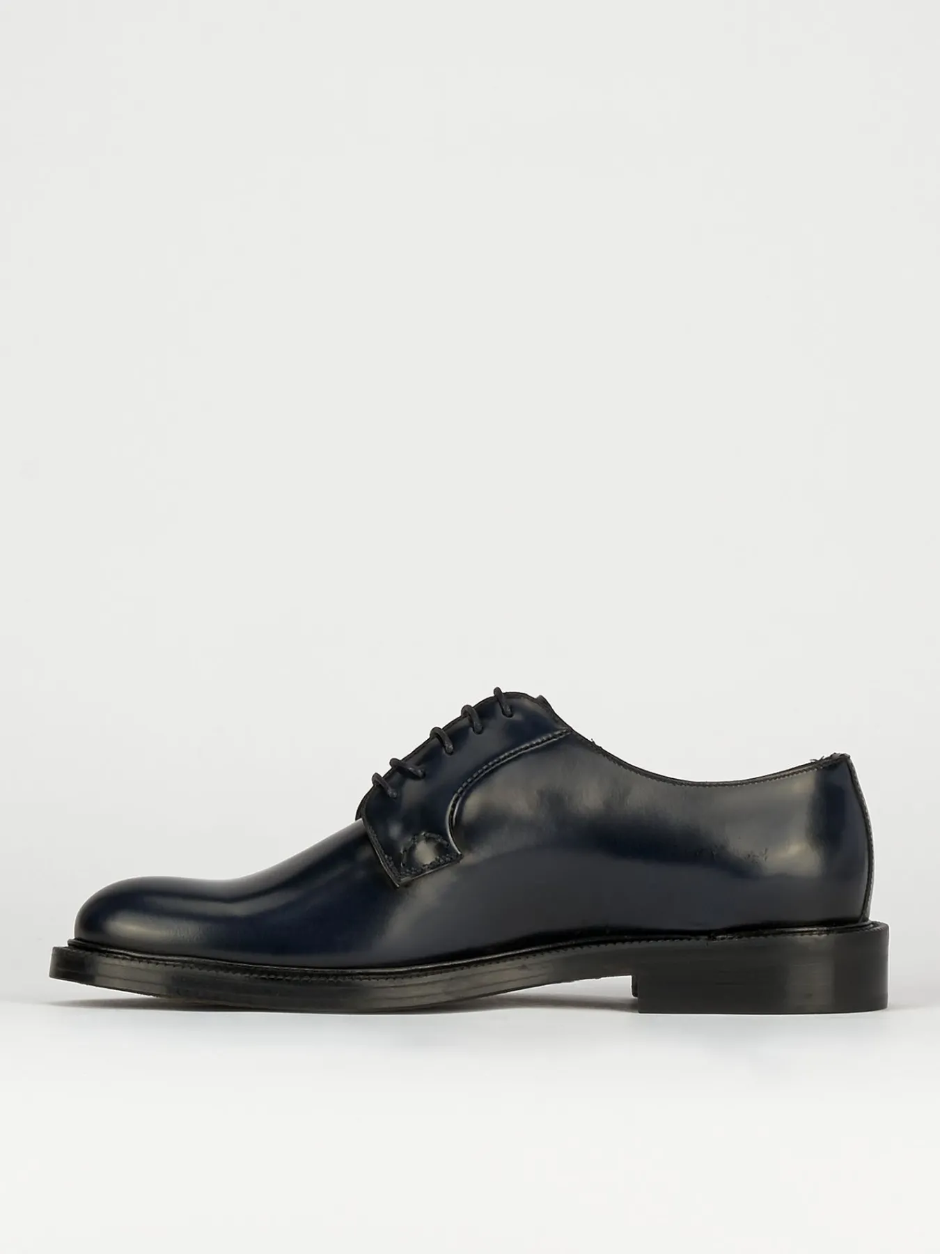 Realizzata in pelle blu spazzolata, questa scarpa presenta una raffinata allacciatura derby a 3 fori che aggiunge un tocco di classe al tuo look.