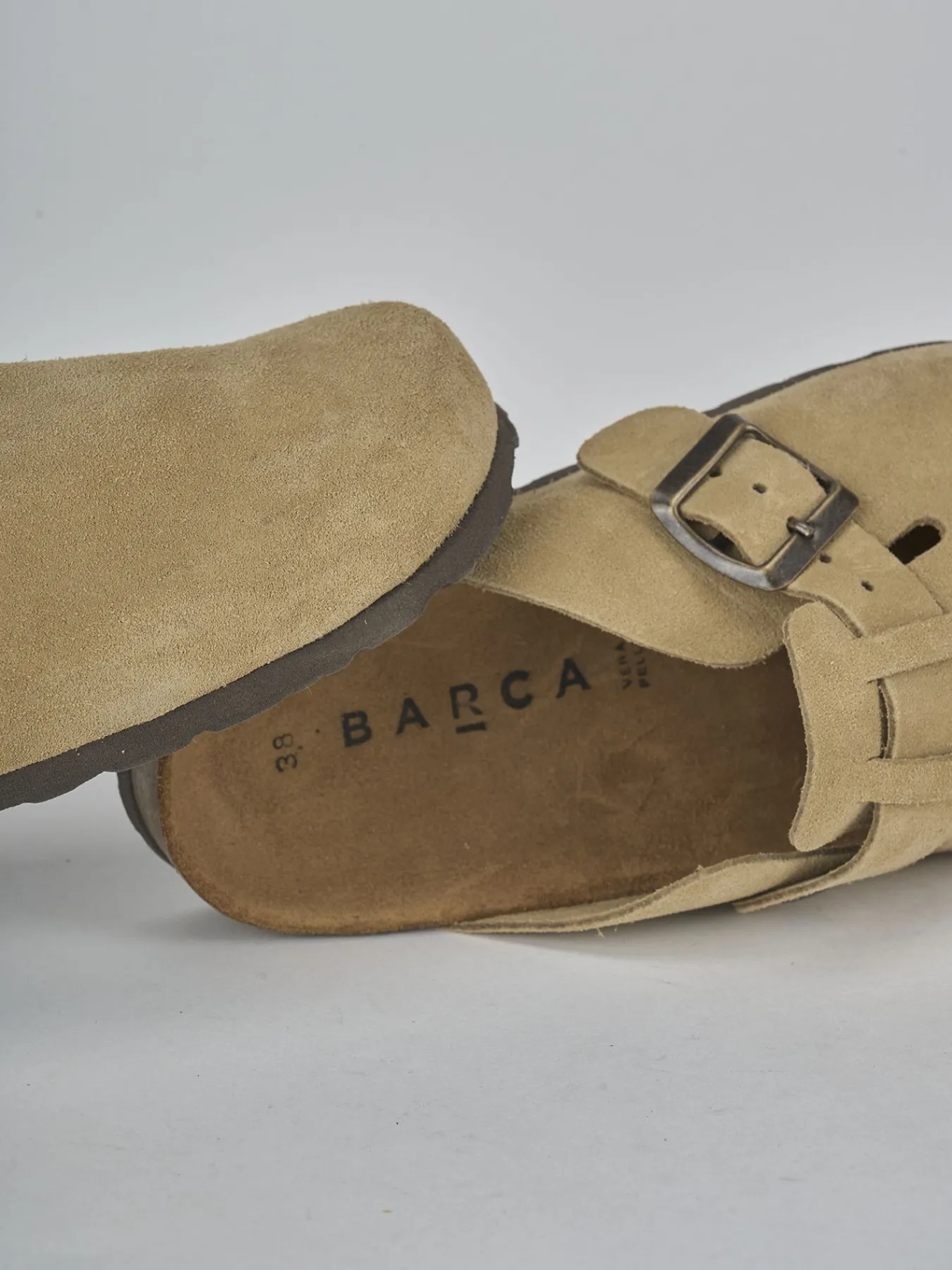 La grande fibbia centrale non è solo un dettaglio estetico, ma anche un elemento distintivo che rende questo sabot unico.