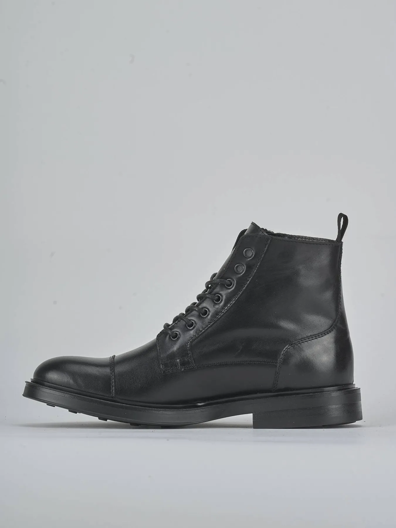 Le cuciture visibili aggiungono un dettaglio elegante, mentre i lacci con occhielli in metallo garantiscono una chiusura sicura e resistente.
