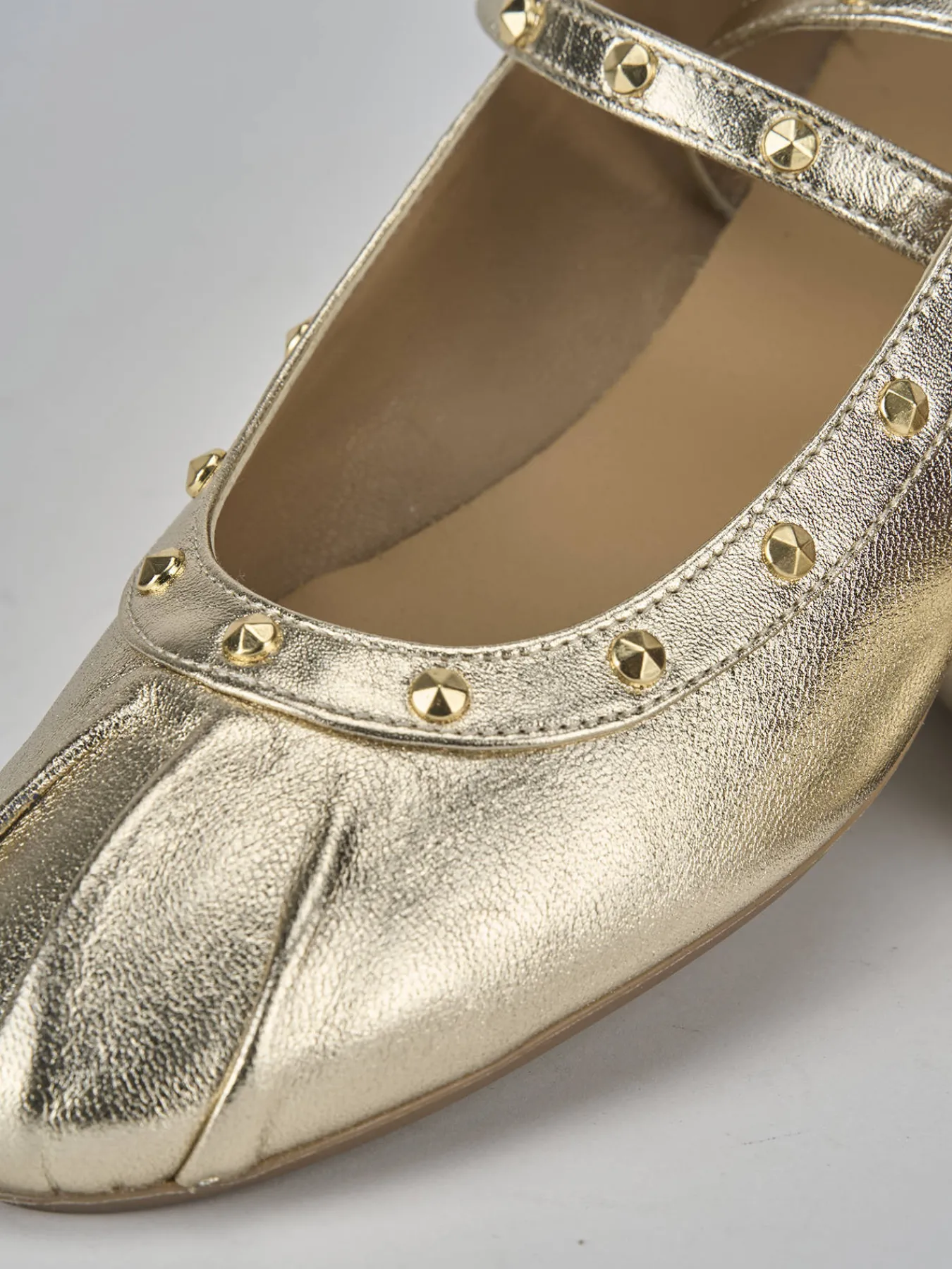 La punta bombata con ripiegatura e lo scollo a U aggiungono un tocco di raffinatezza al design.