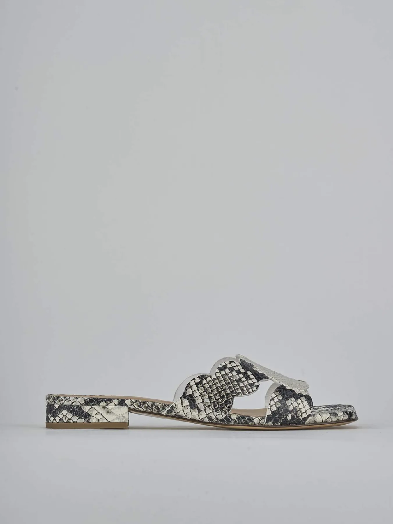Realizzate in morbida nappa con una sofisticata stampa effetto pitonata multicolor, queste ciabatte sono un vero must-have per ogni guardaroba femminile.