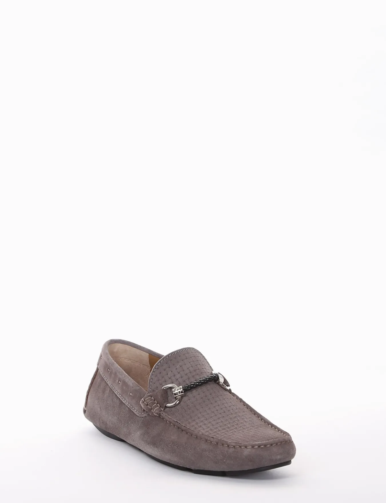 mocassino fondo gomma e soletto interno in vera pelle. Tomaia in morbidissimo camoscio con puntale intrecciato e particolarissima treccina in pelle sul collo del piede.