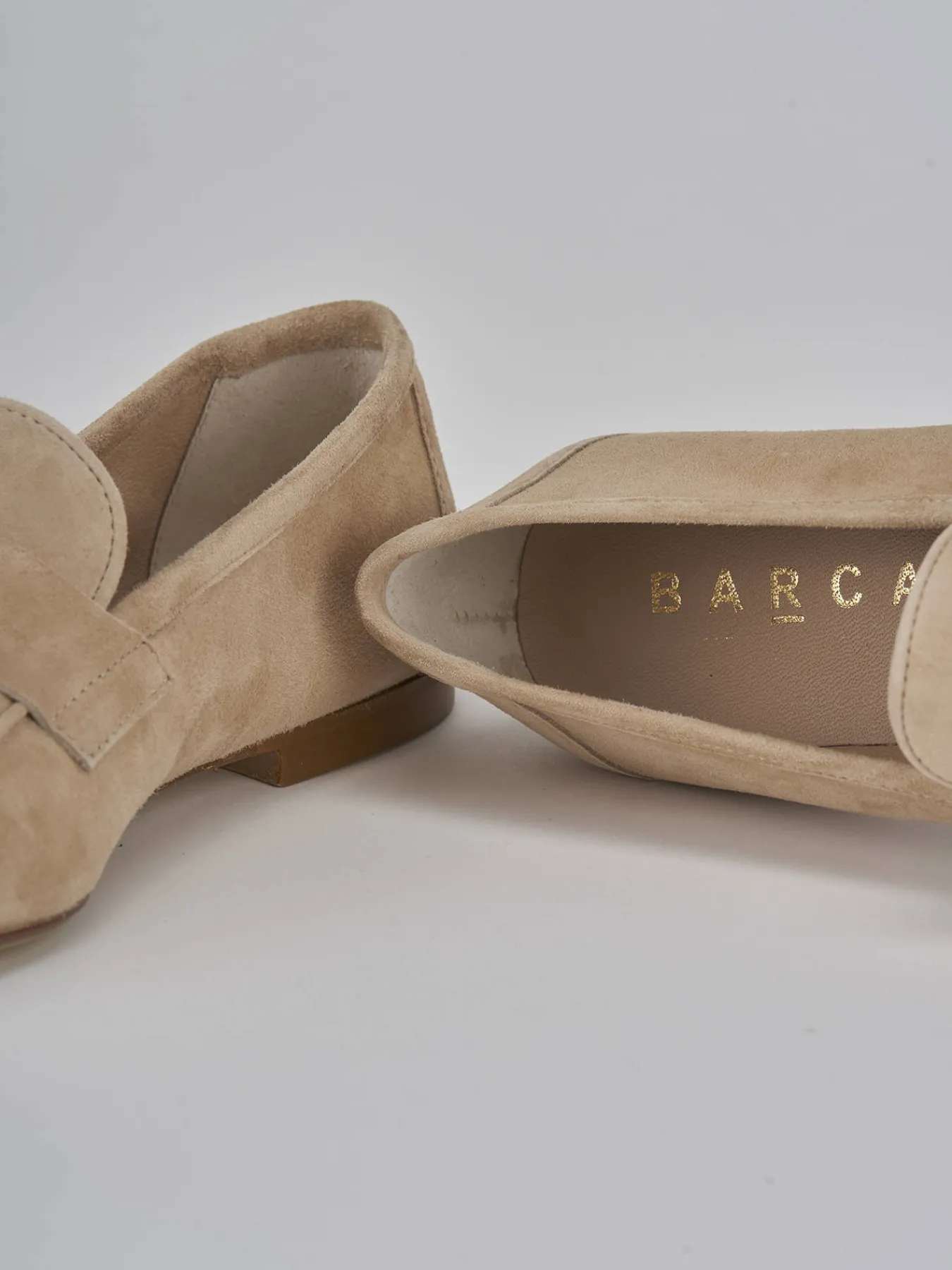 La tomaia in morbido camoscio avvolge il piede con delicatezza, mentre la punta affusolata e le cuciture visibili aggiungono un tocco di carattere.