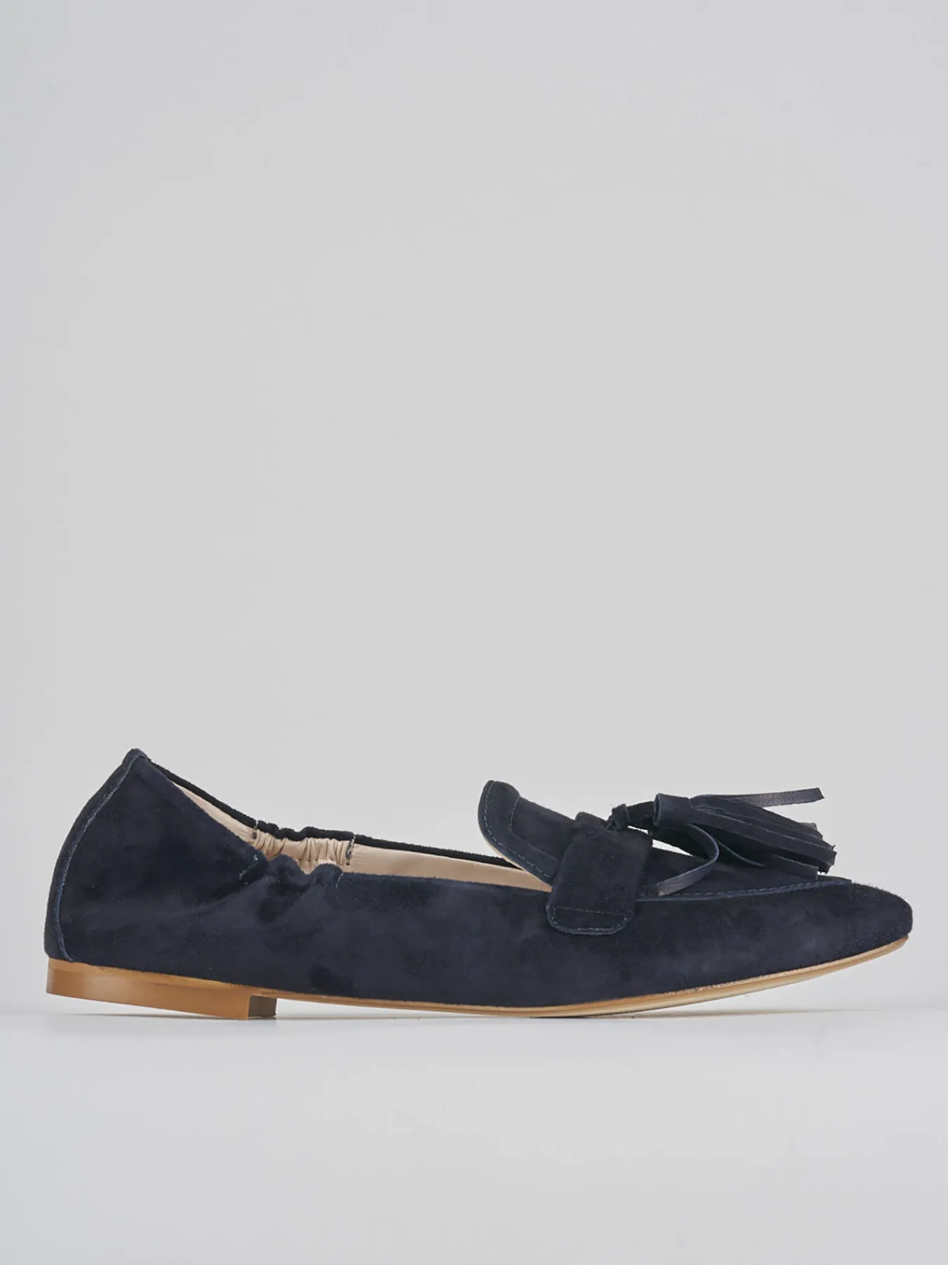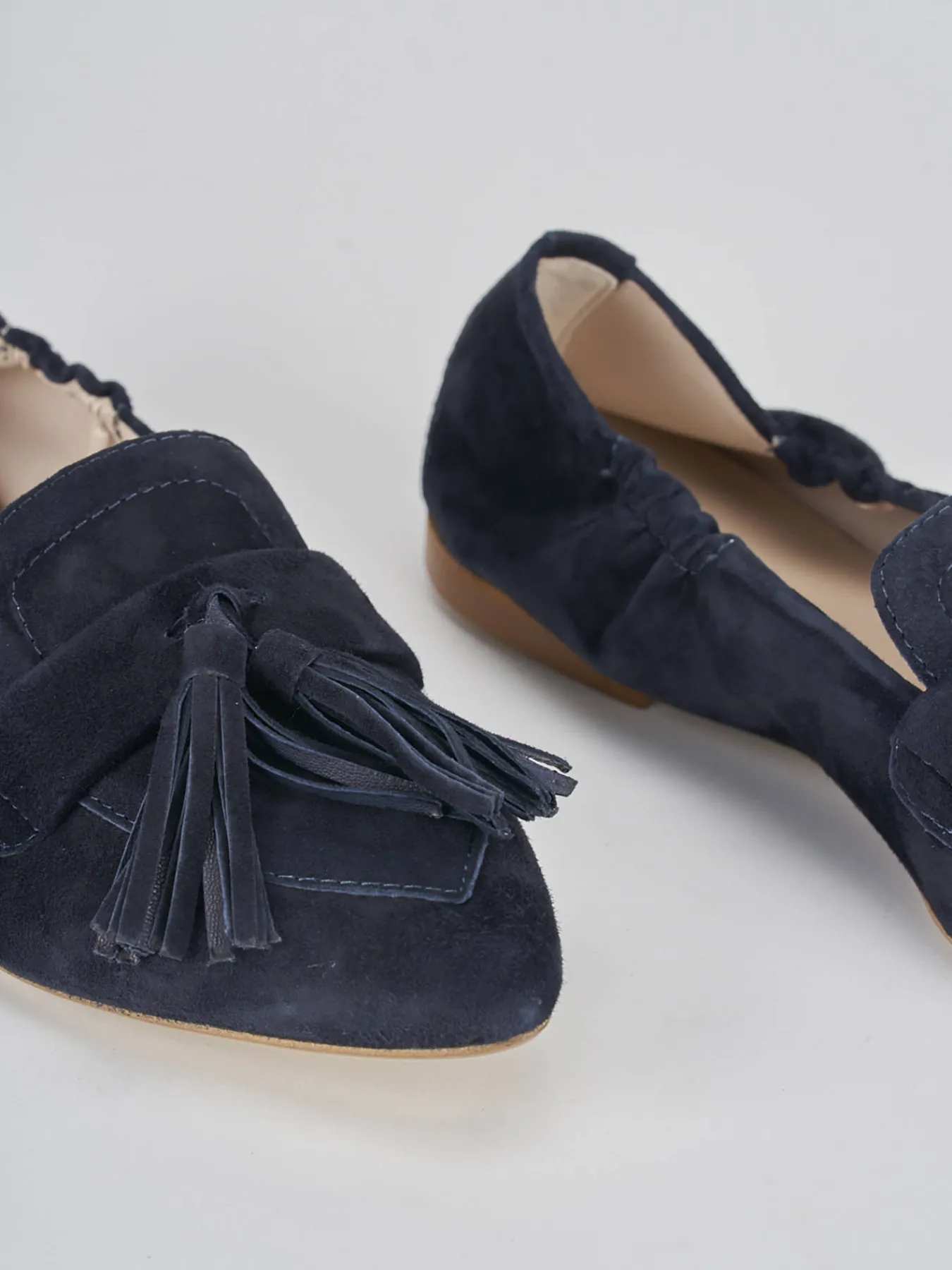 La tomaia è realizzata in morbido camoscio blu, con una punta sfilata che aggiunge un tocco di raffinatezza.