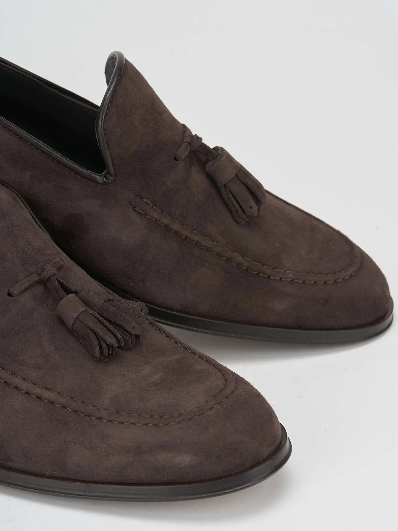 mocassino tacco 2 cm fondo in cuoio e soletto interno in vera pelle. Tomaia in morbidissimo camoscio con bellissima nappina sul collo del piede. Un classico oltre le stagioni.