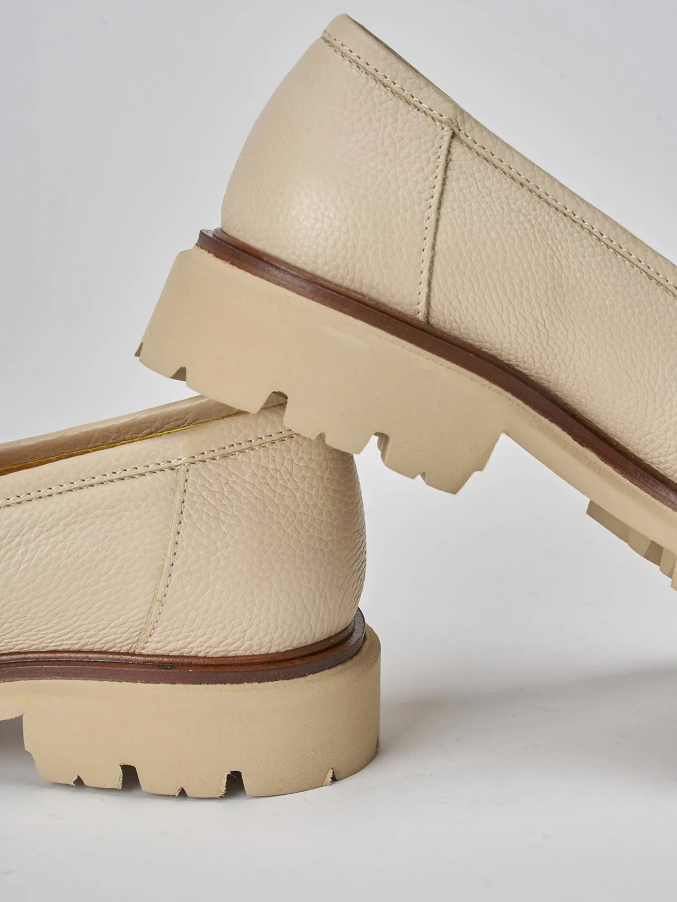 Mocassino tacco 2 cm fondo in gomma e soletto interno in vera pelle. Tomaia in morbida pelle bottalata, punta leggermente squadrata, cuciture in rilievo, morsetto e fondo seghettato per il massimo del comfort. Adatta per ogni stagione.