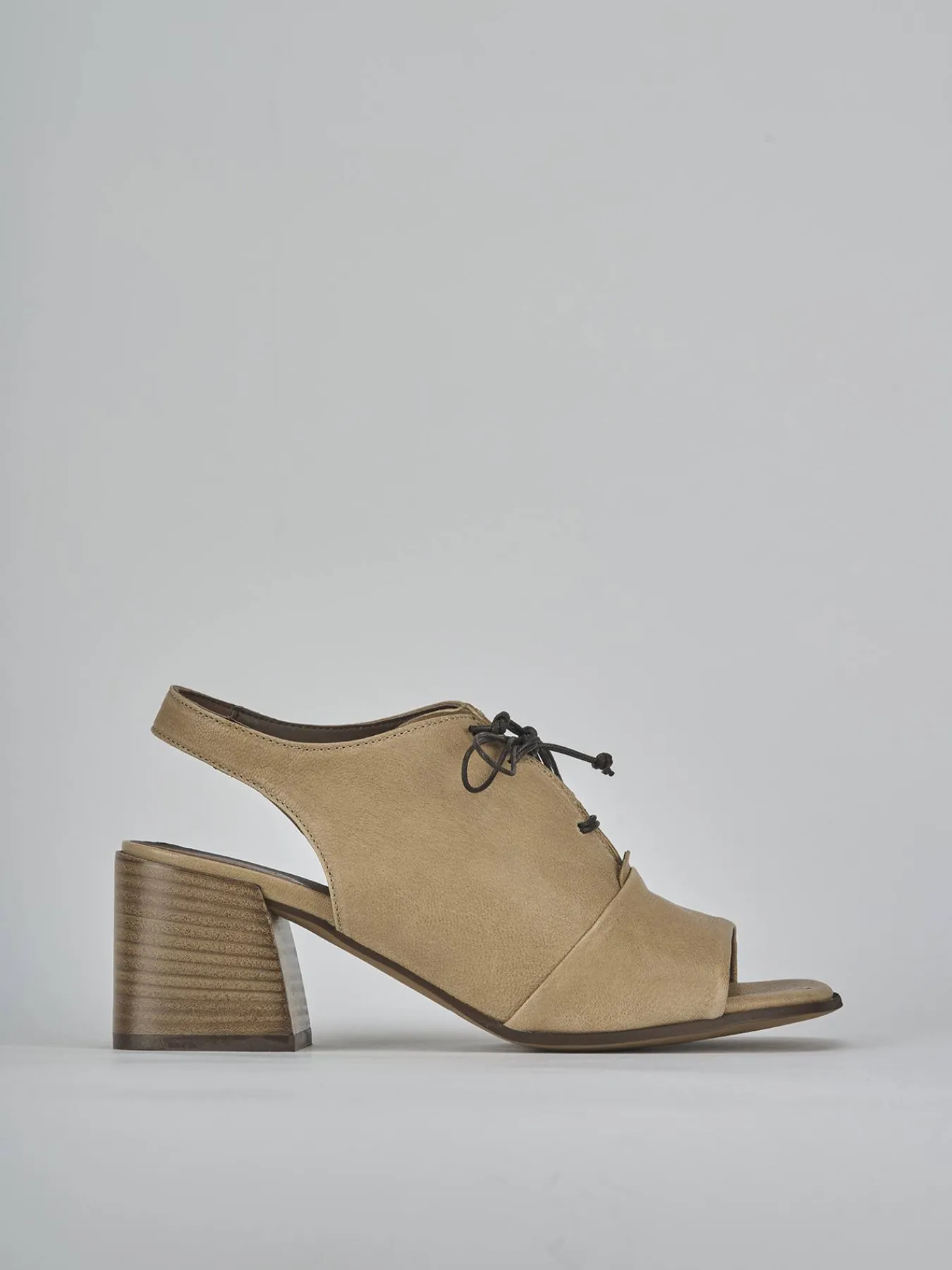 Sandalo tacco 6 cm fondo in leggera gomma e soletto interno in vera pelle. Tomaia in morbida pelle, punta leggermente squadrata e aperta, lace, cinturino sottile e comodo tacco grosso. Perfetto con una gonna e una camicia.