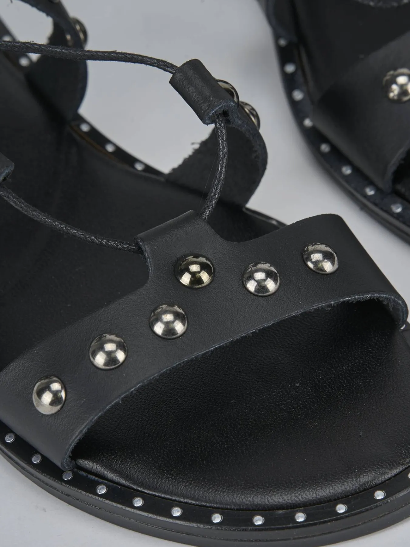 La tomaia in morbida pelle avvolge il piede con eleganza, mentre le fasce decorate con borchie aggiungono un tocco di carattere al tuo look.