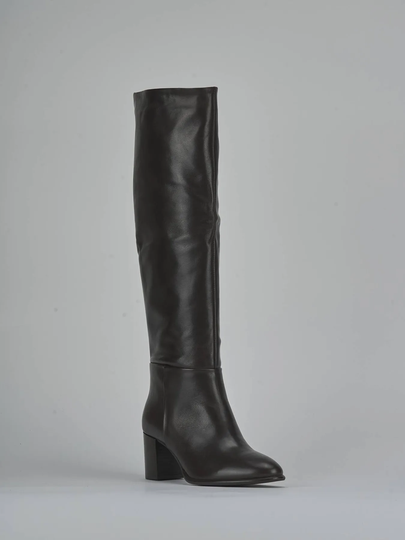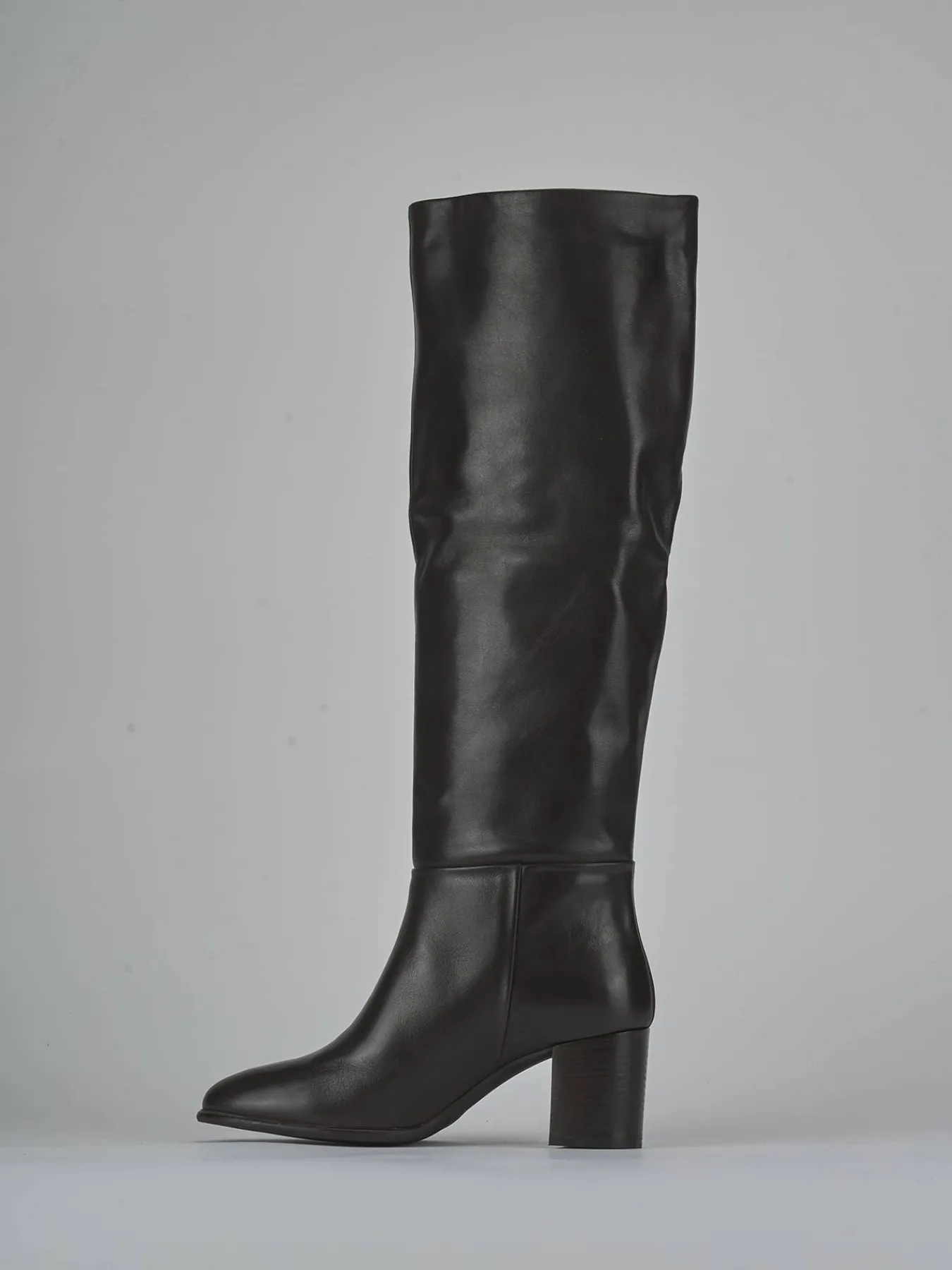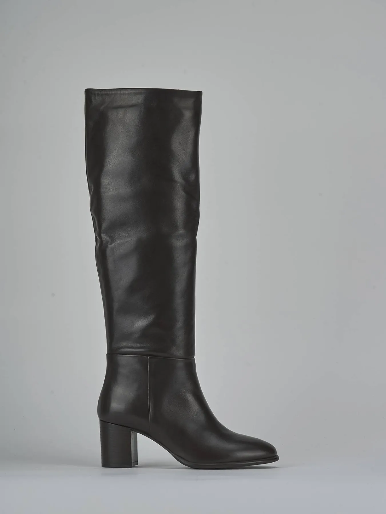 Le cuciture visibili lungo il gambale tubolare, che si ferma appena sotto il ginocchio, donano un dettaglio raffinato e ricercato.