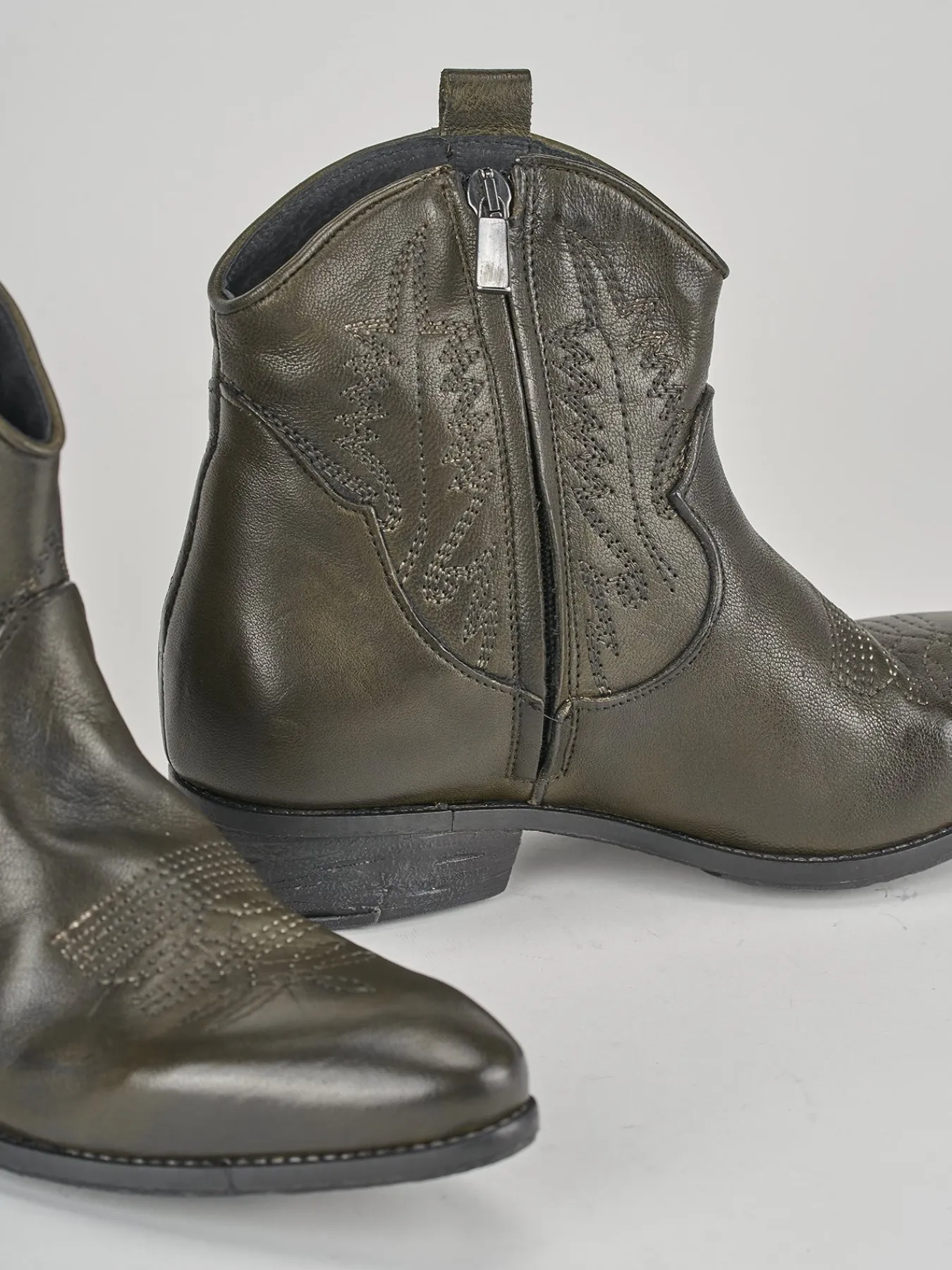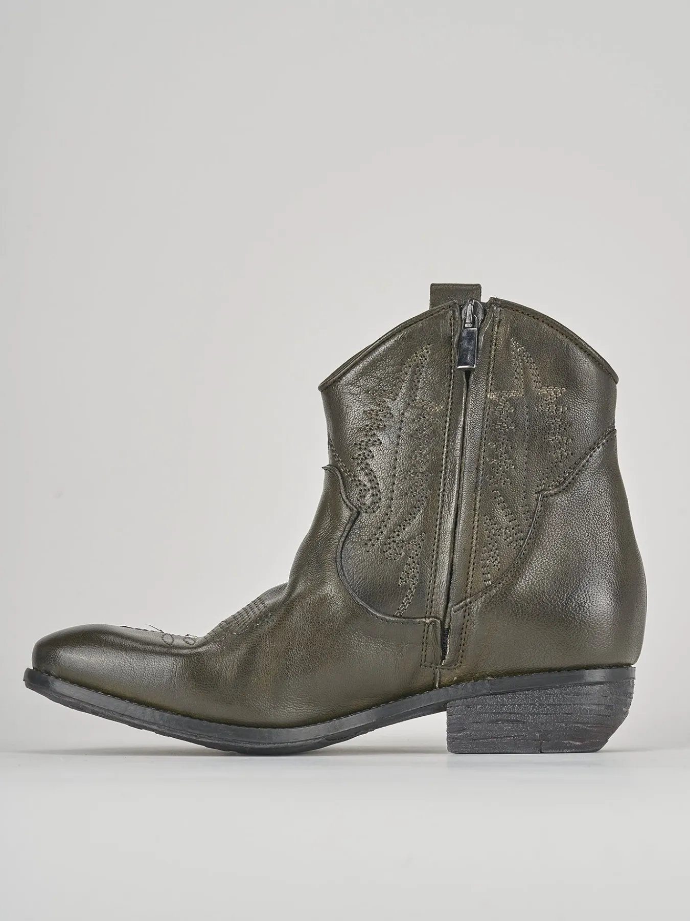 Pensato per la donna moderna, questo stivaletto a tacco basso è l’accessorio perfetto per completare il tuo look con un tocco di classe.