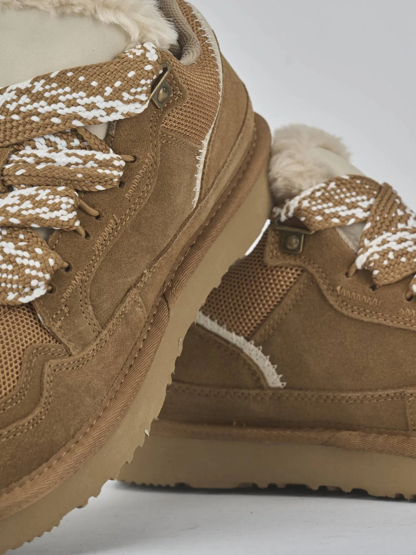 Il fondo in gomma e il soletto interno in vero montone offrono un calore e una comodità ineguagliabili. Mentre l’interno in vero montone avvolge il piede garantendo comfort e calore duraturi.