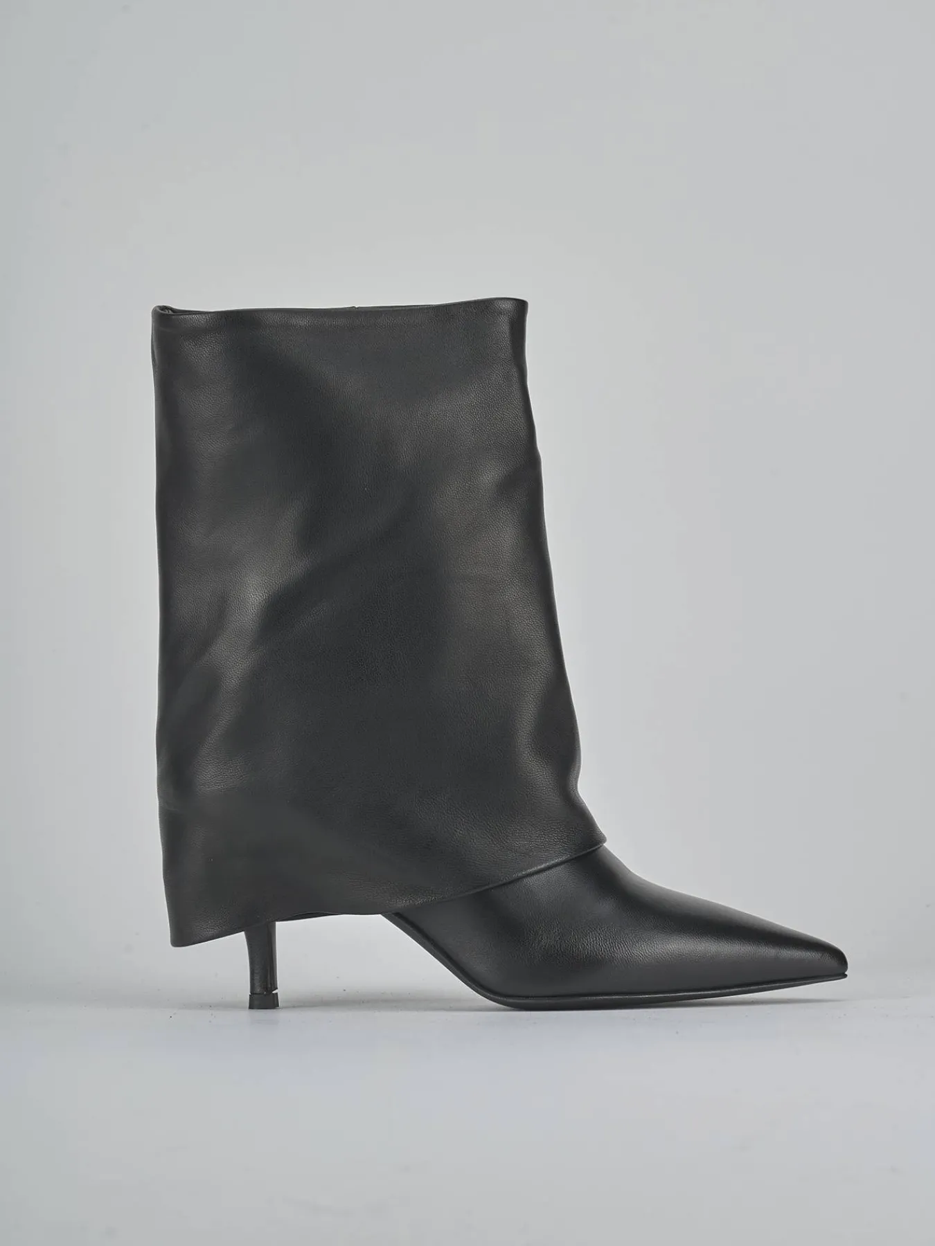 La tomaia in morbida pelle nappata avvolge il piede con un risvolto fino al tallone, mentre la punta sfilata dona un aspetto sofisticato.