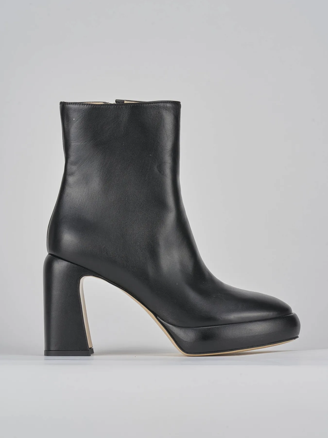 Stivaletto tacco 9 cm fondo in cuoio e soletto interno in vera pelle. Tomaia in morbida pelle, punta leggermente squadrata, comoda cerniera laterale, plateau bombato di 2 cm e tacco grosso per un look sporty-chic.