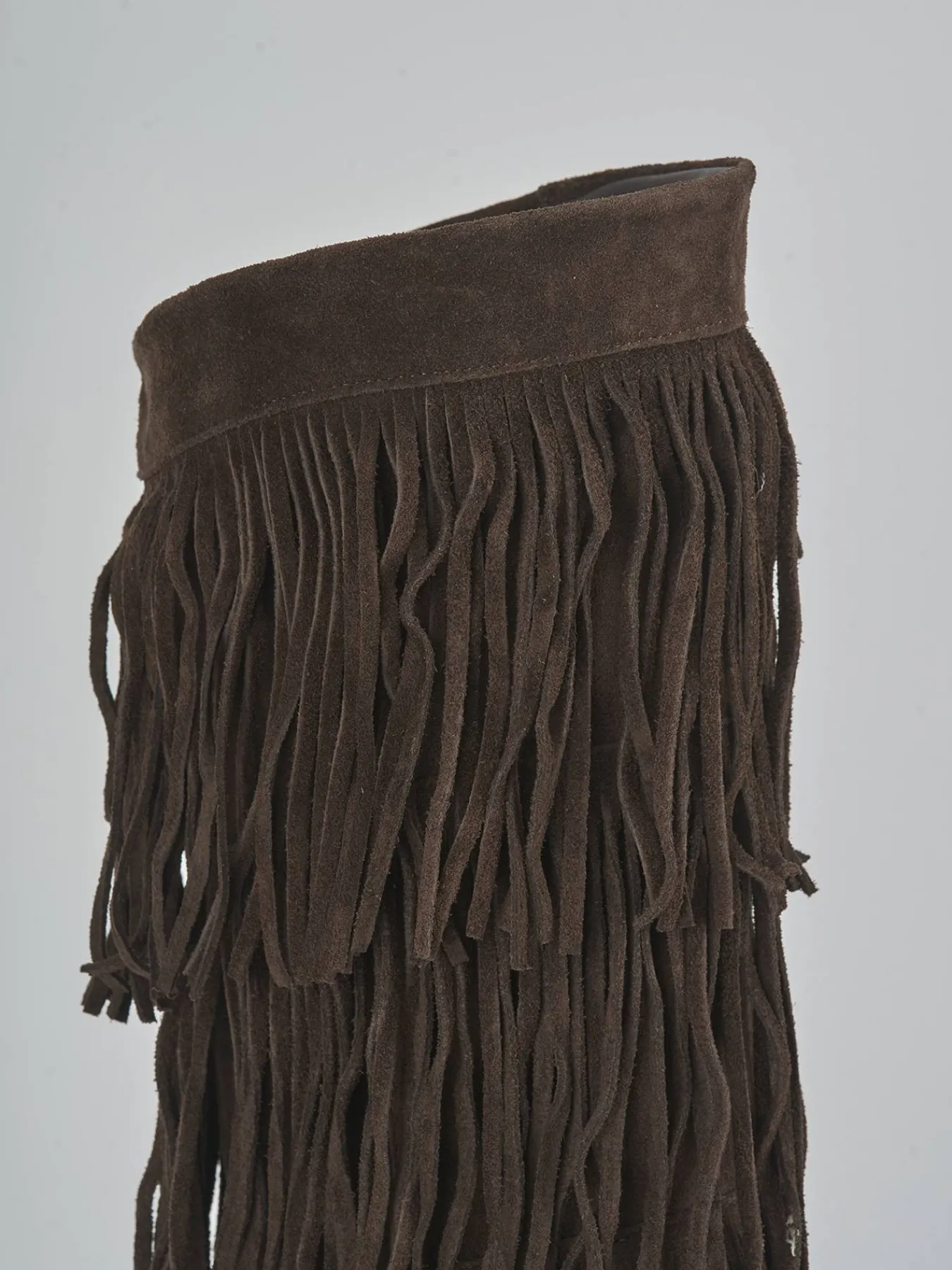 Le frange sul gambale, che si fermano appena sotto il ginocchio, donano movimento e stile a ogni passo.