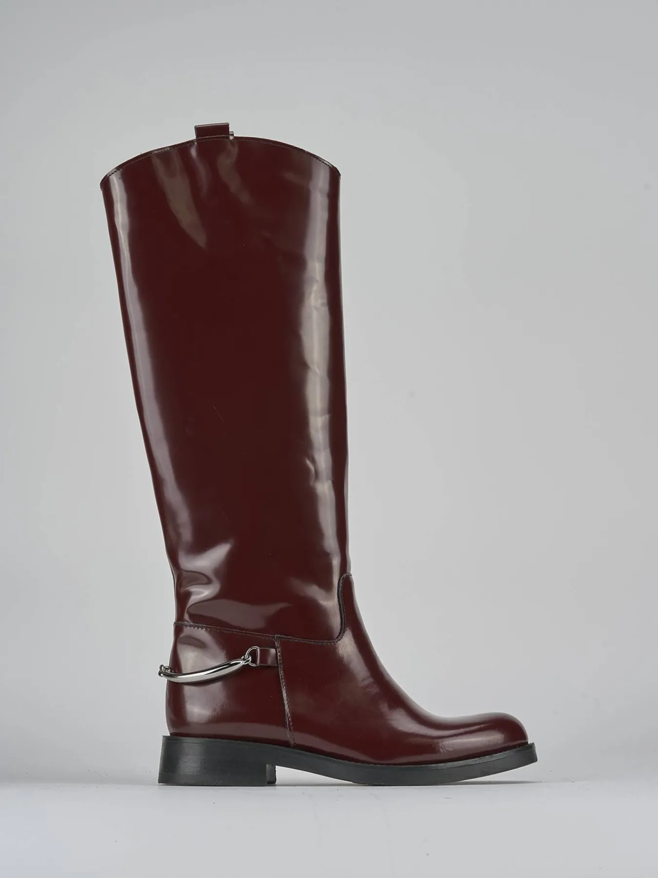 Il gambale, che arriva appena sotto il ginocchio, presenta cuciture eleganti e uno scollo a ‘U’ su entrambi i lati, esaltando la silhouette.