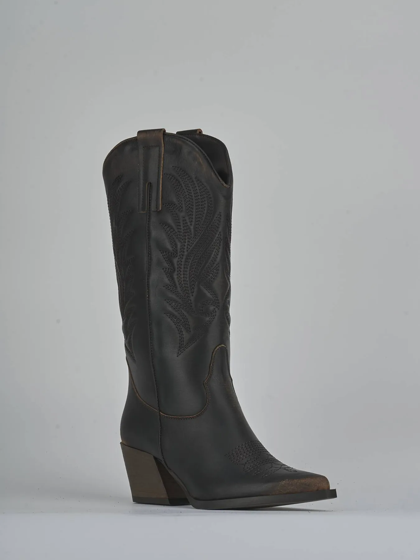 Realizzati in morbida pelle Texas, presentano una tomaia con cuciture a mano in rilievo e ricami in tinta che decorano la punta e il gambale.