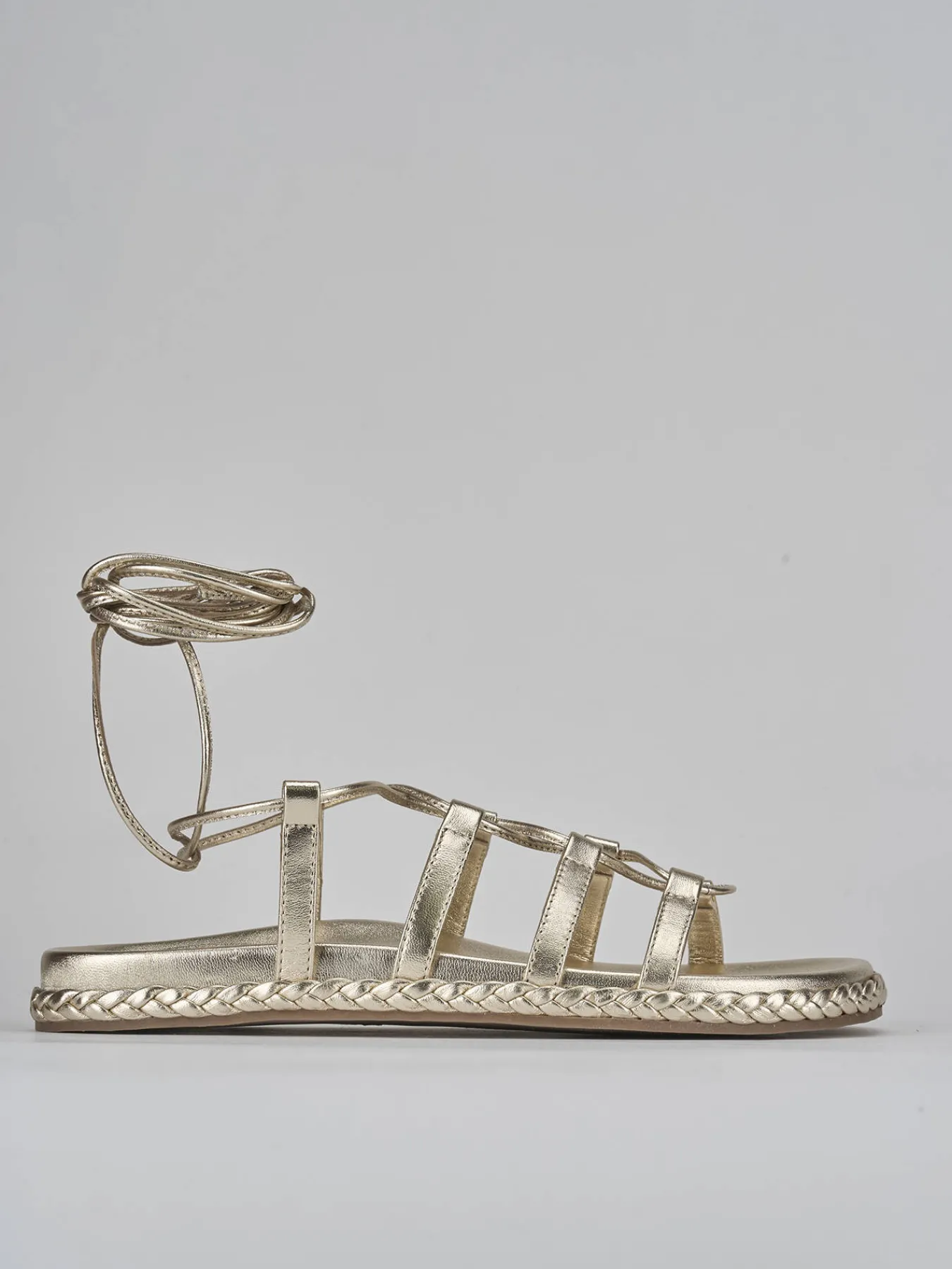 Con un design raffinato, la tomaia in morbida nappa presenta sottili cinturini intrecciati che avvolgono delicatamente il piede.