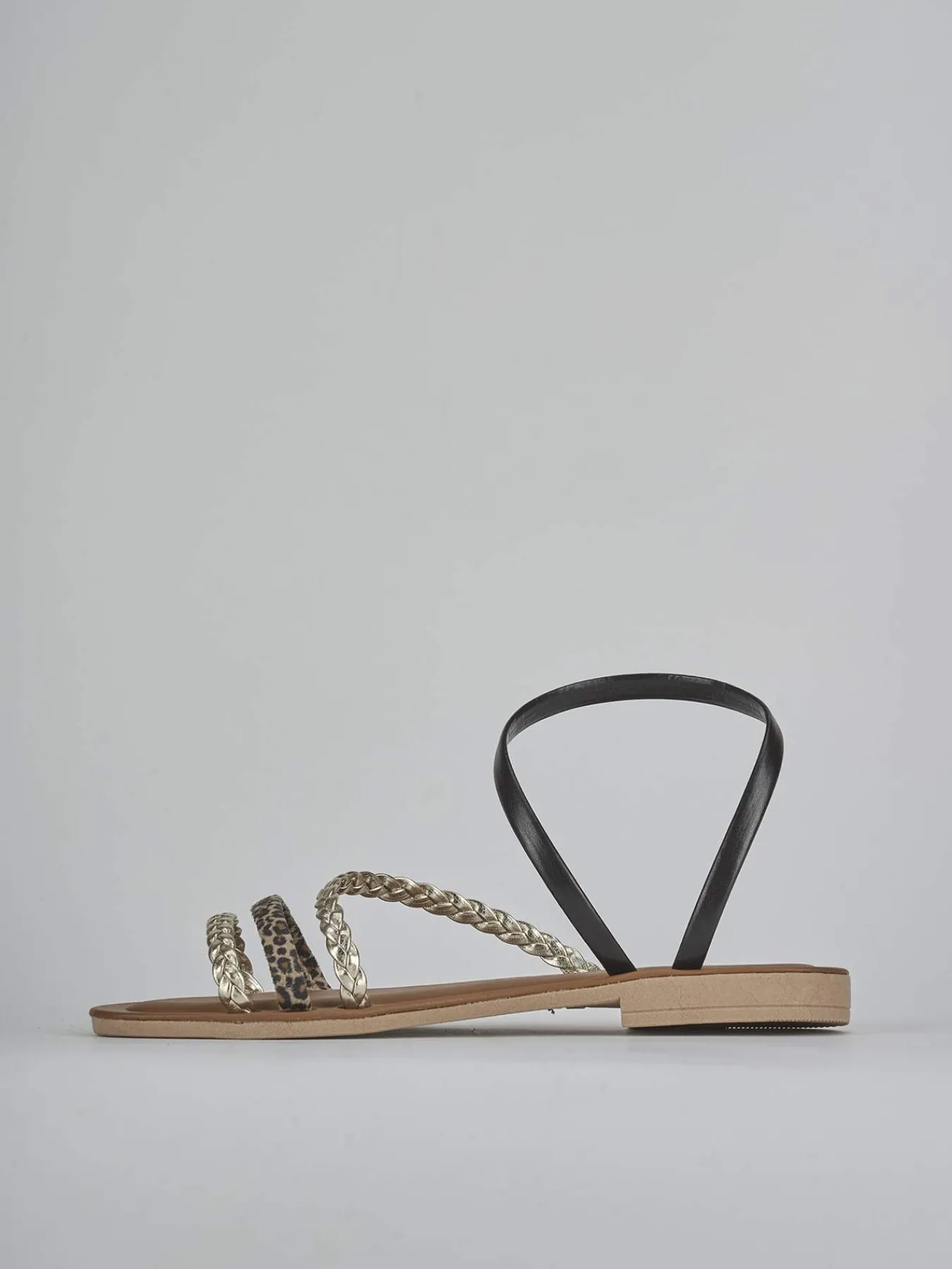 Realizzati in morbida pelle multicolor, questi sandali vantano un design ricercato con fasce a treccia sul collo del piede e una fascia con stampa leopardata in punta.