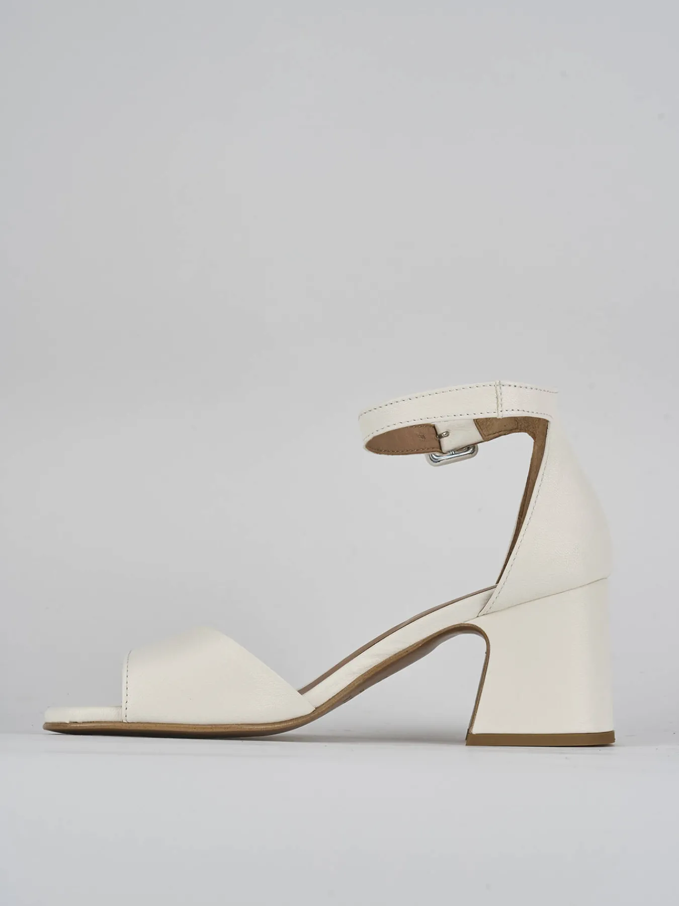 Sandalo tacco 7 cm fondo in cuoio e soletto interno in vera pelle. Tomaia in morbida pelle, punta leggermente squadrata, fascia unica in punta, cinturino in caviglia con fibbia regolabile e nuovissimo tacco. Perfetto sia con degli shorts che con un vestito midi floreale.