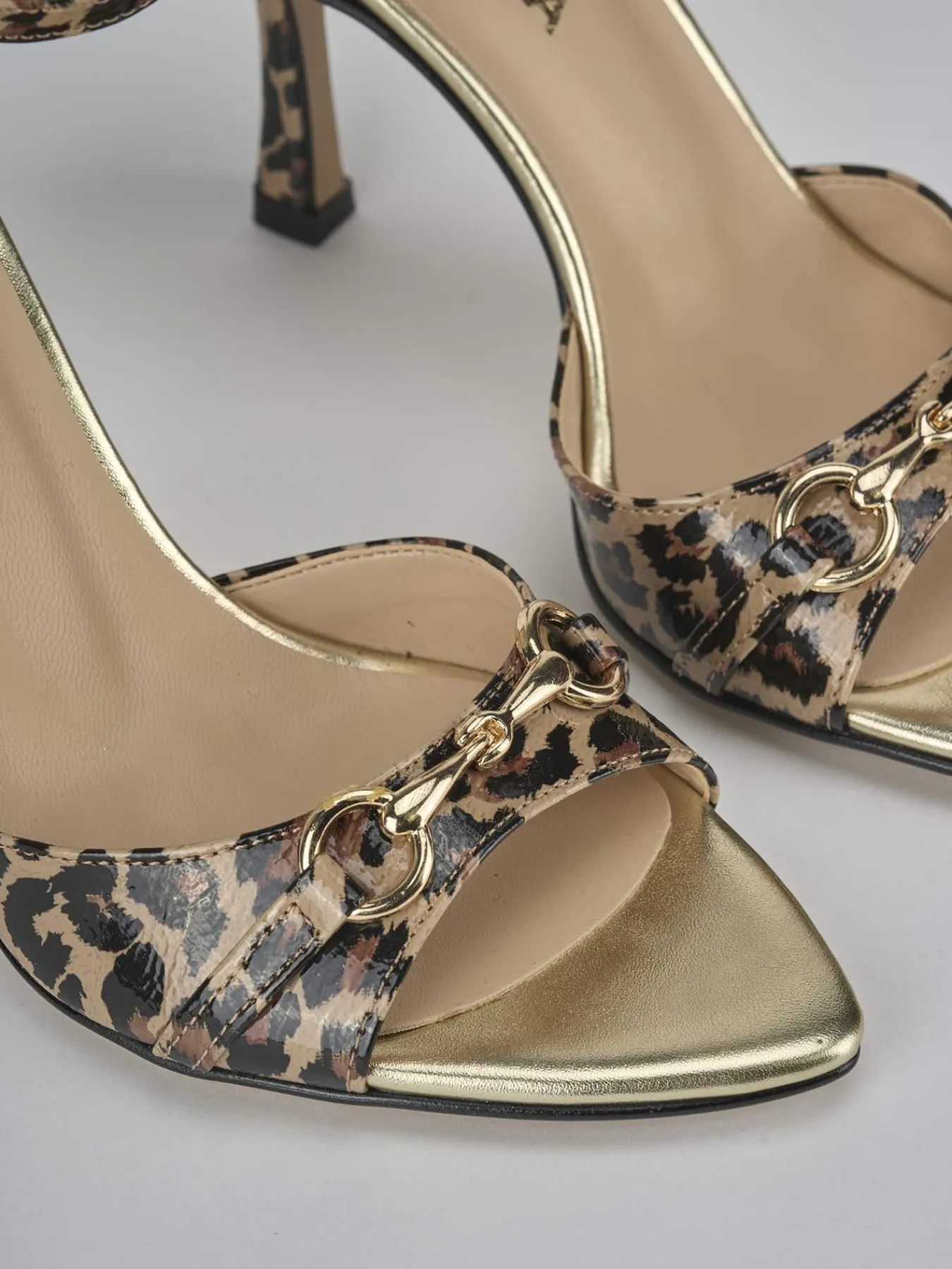Sandalo tacco 9 cm fondo in gomma e soletto interno in vera pelle. Tomaia in morbida pelle foderata in tessuto, punta sfilata, fascia unica, mosrsetto, cinturino in caviglia con fibbia regolabile e tacco rocchetto. Perfetto per un tocco fun ai tuoi look.