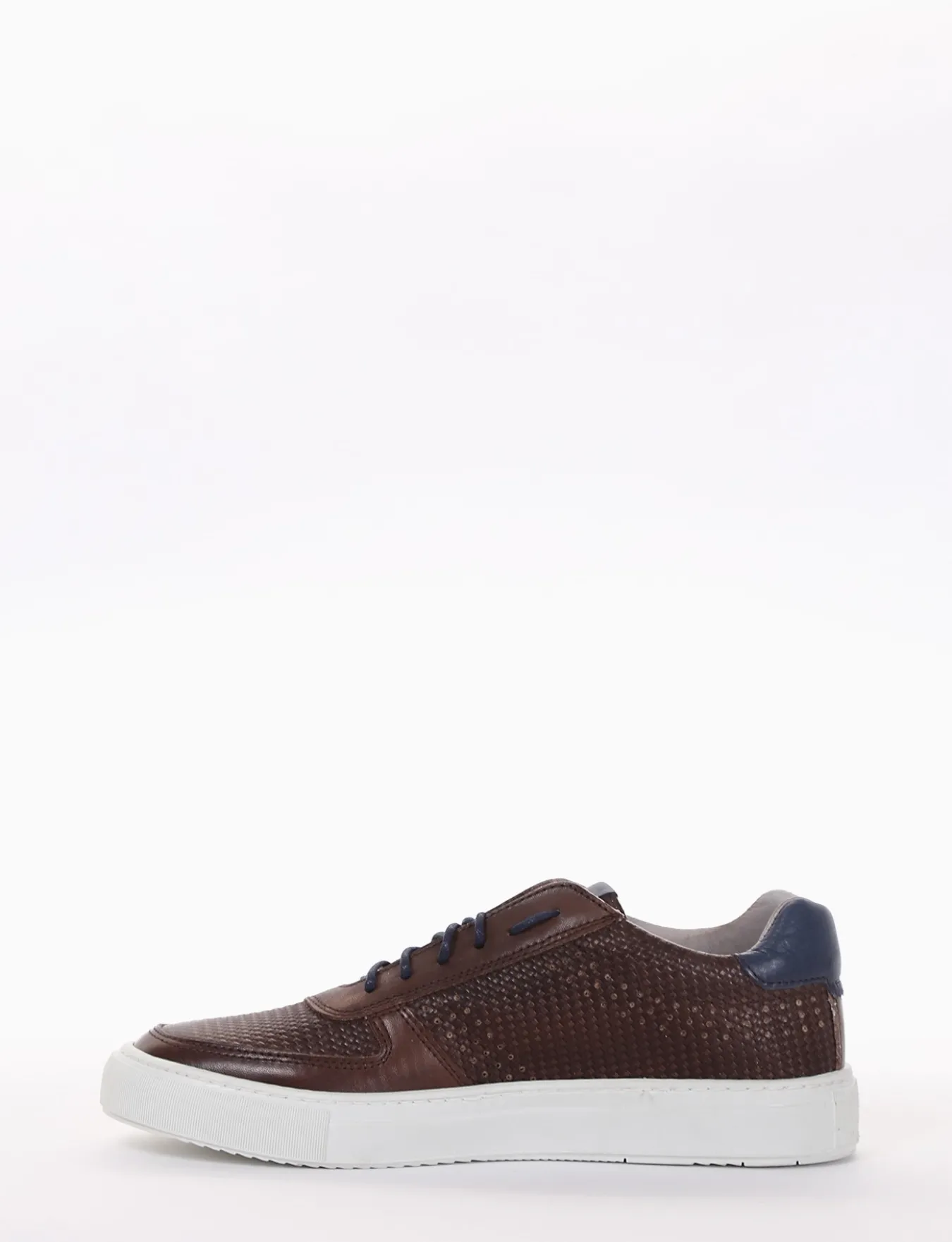 sneakers fondo in gomma e soletto interno in vera pelle. Tomaia in morbidissima pelle nappata intrecciata con particolarissima foratura su entrambi i lati, ideale per il tuo tempo libero.