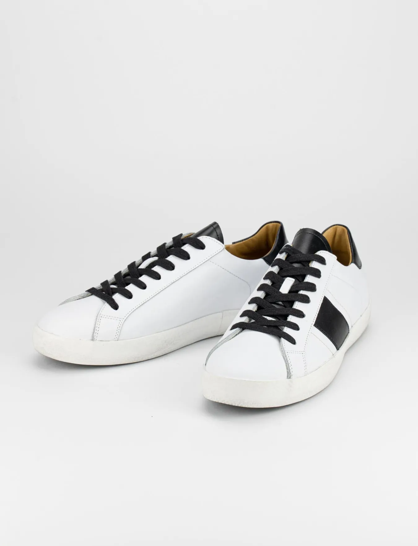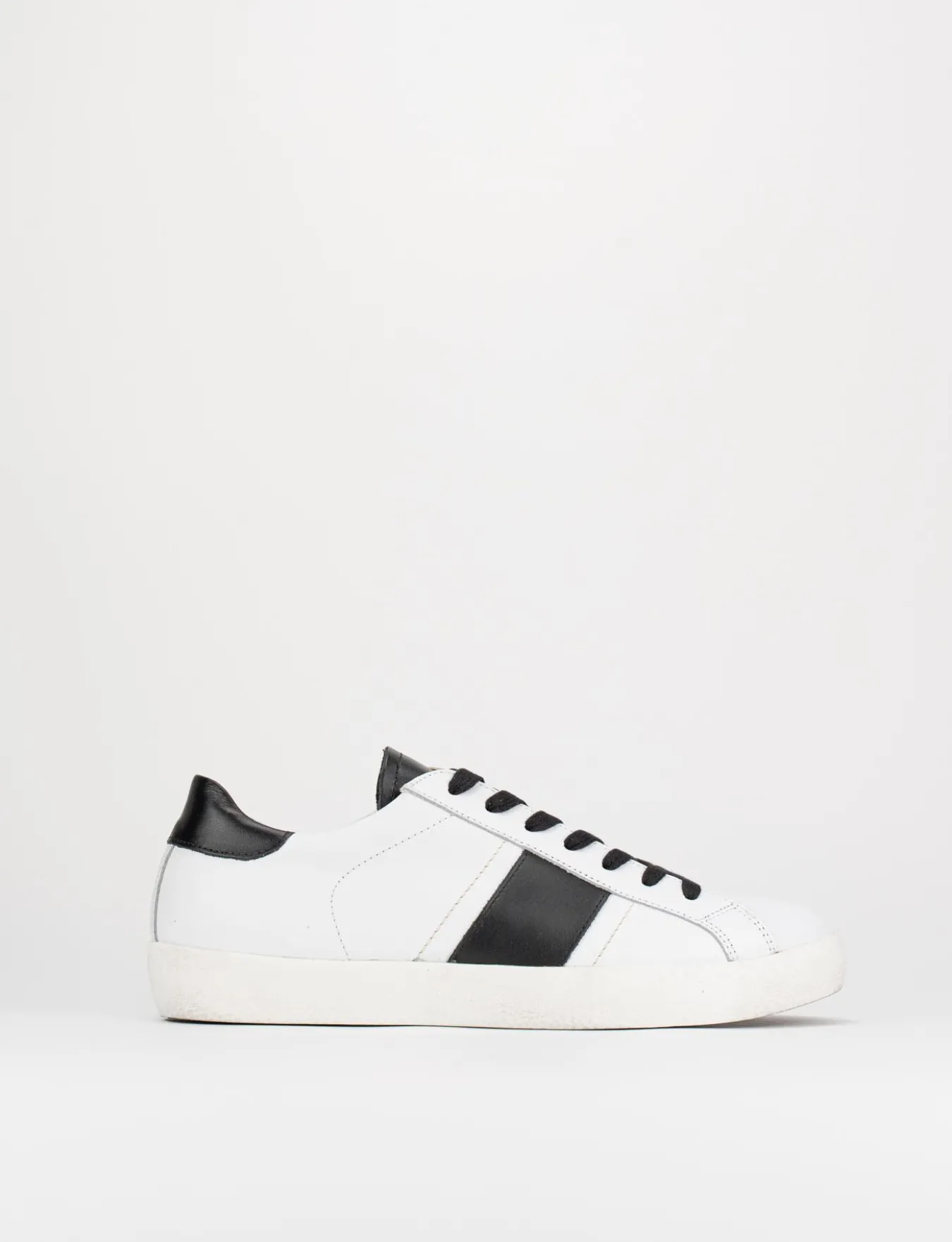 sneakers fondo gomma e soletto interno in vera pelle. Tomaia in morbida pelle con topponcino e fascia laterale in pelle a contrasto per un look cool.