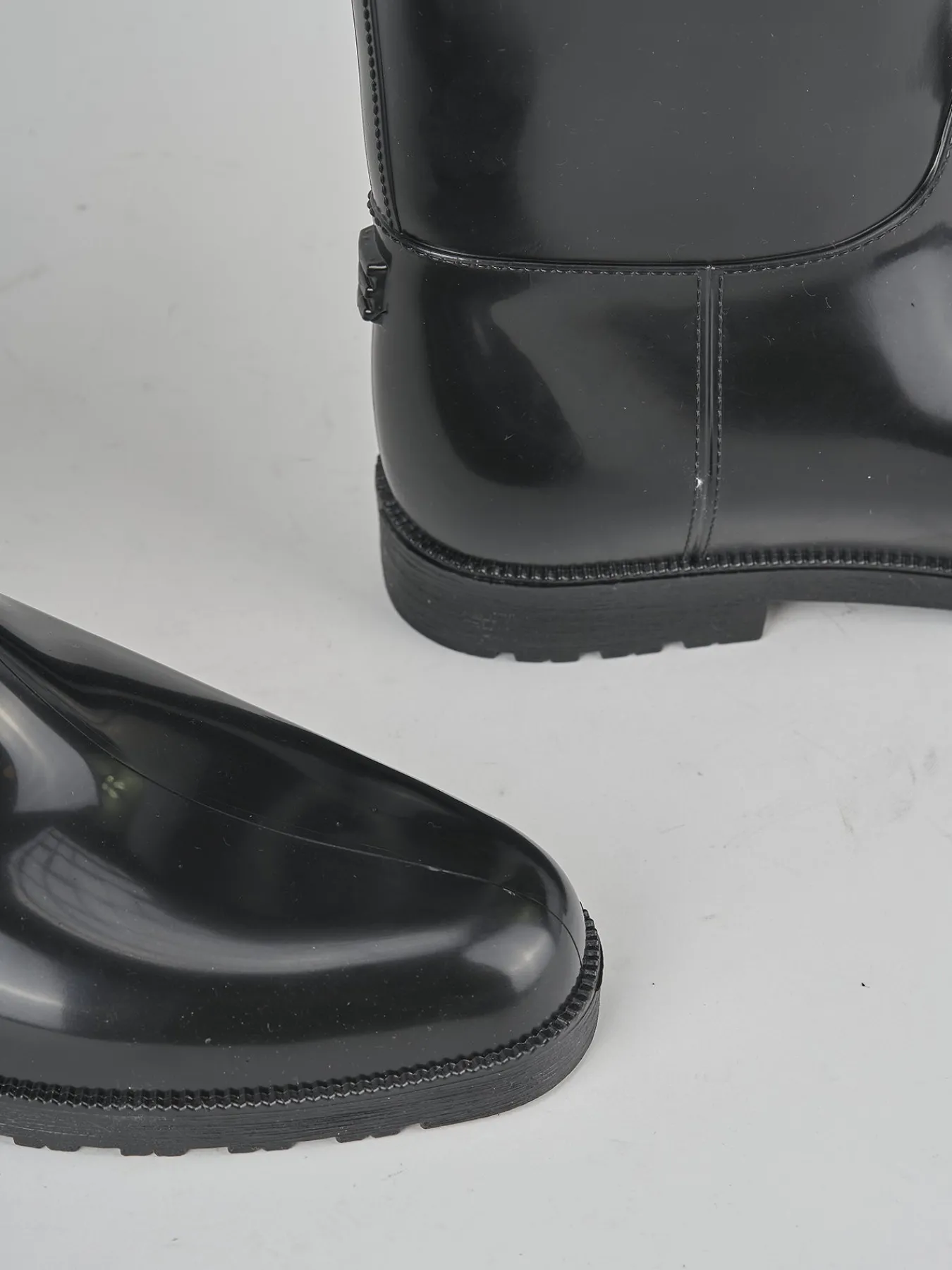 Realizzato in gomma nera, questo stivale da donna presenta un tacco basso di 2 cm, ideale per chi cerca comodità senza rinunciare all’eleganza.