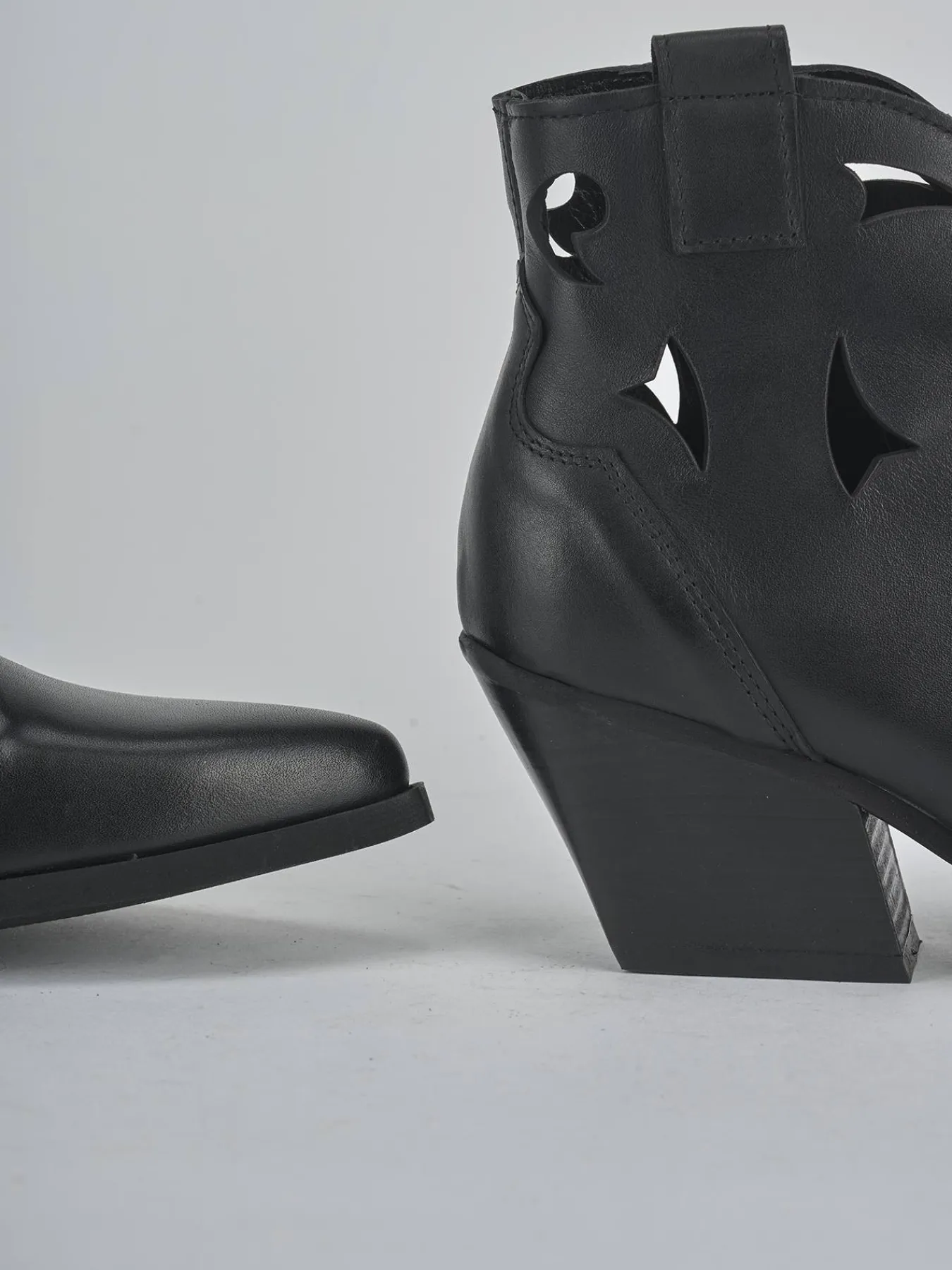 Stivaletto texano 5.5 cm fondo in gomma e soletto interno in vera pelle. Tomaia in morbida pelle, punta sfilata, ghette, cuciture in rilievo, laserato, rapida chiusura con cerniera laterale e tacco cubano. Dal design ricercato, versatile con ogni tuo look.