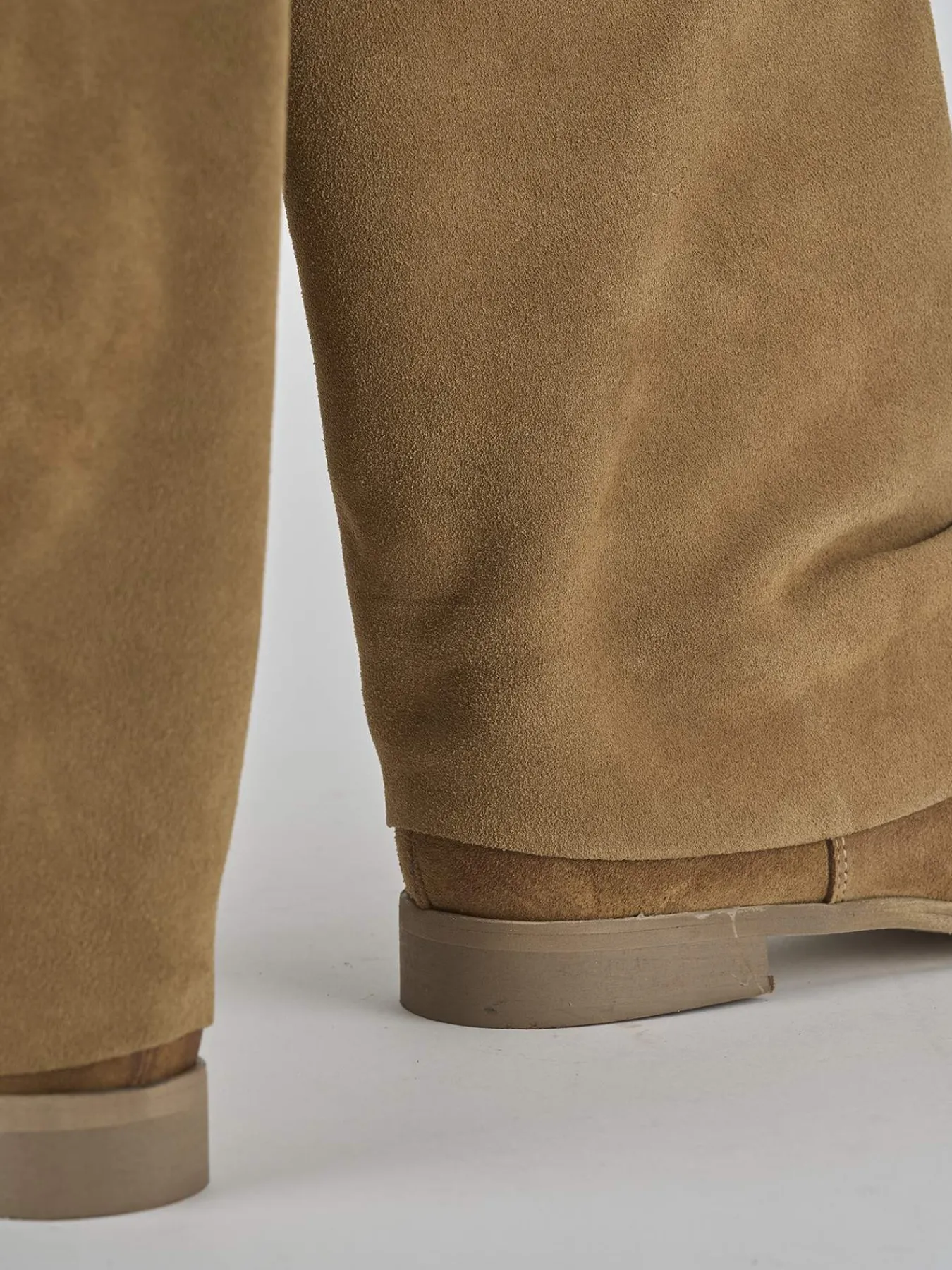 Stivale tacco 2 cm fondo in gomma e soletto interno in vera pelle. Tomaia in morbido camoscio, punta sfilata, risvolto aderente sul gambale che si arriccia e che misura a 3cm dal ginocchio. Dalle linee versatili per ogni tuo look.