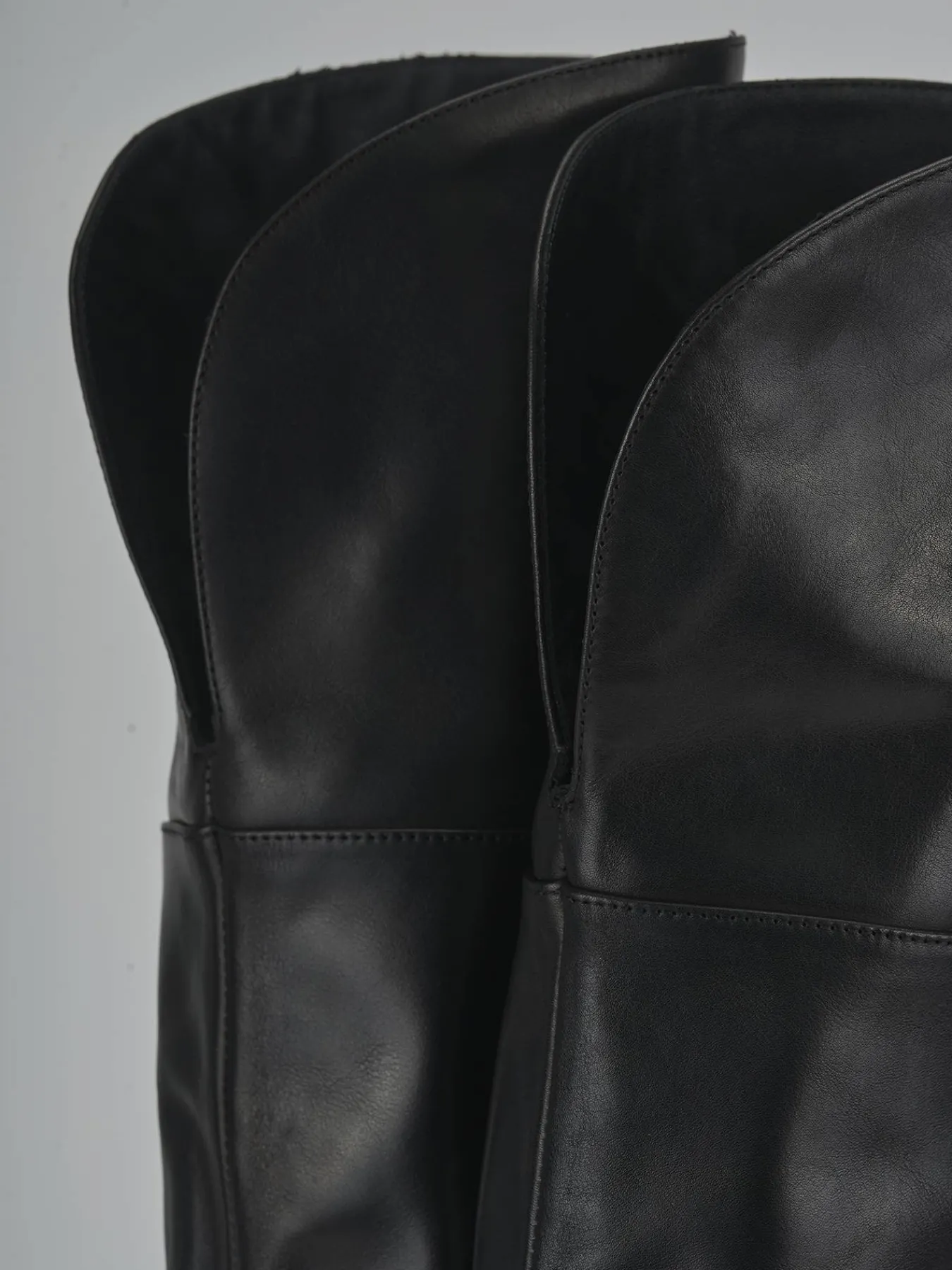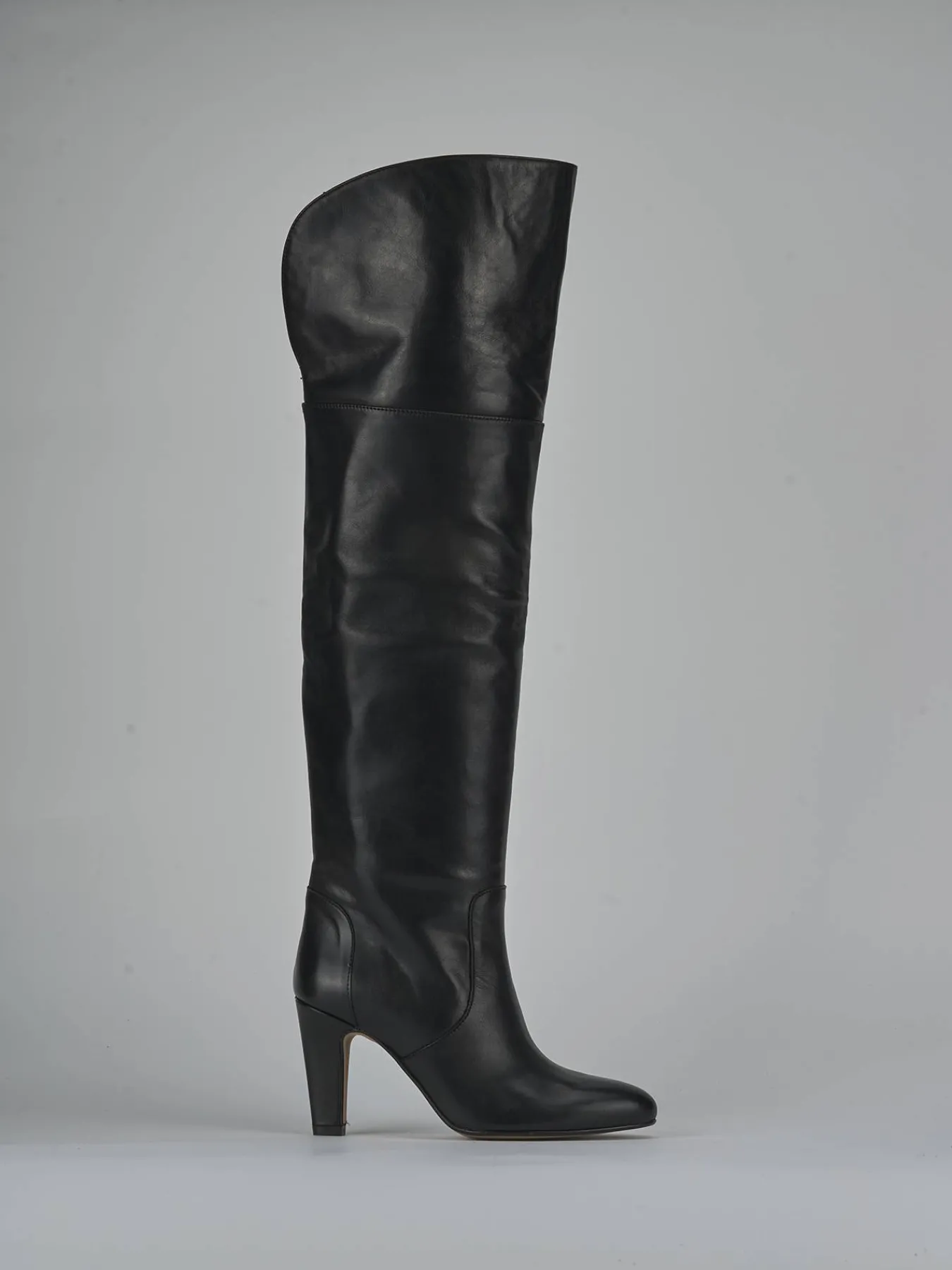 Realizzati in morbida pelle, questi stivali presentano una punta tonda e cuciture visibili lungo il gambale tubolare che si estende appena sopra il ginocchio.