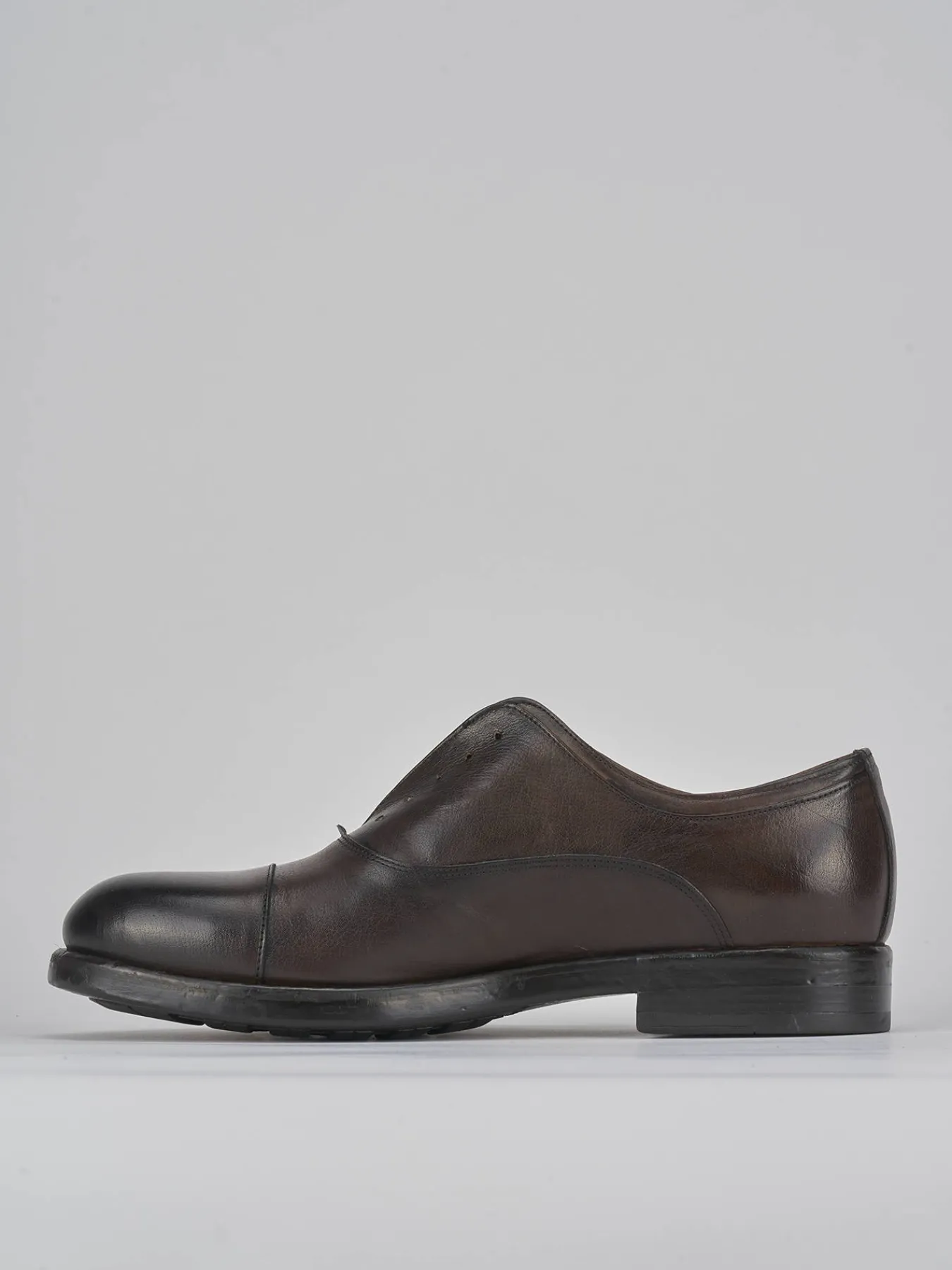 Il modello derby, senza lacci, si distingue per le cuciture a vista che ne esaltano il carattere artigianale.