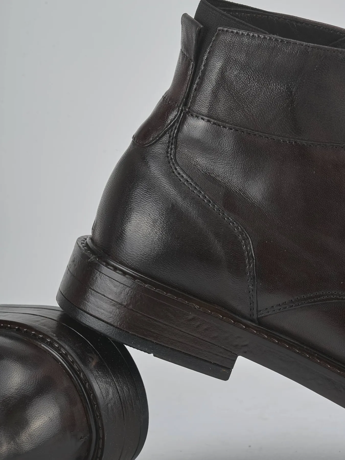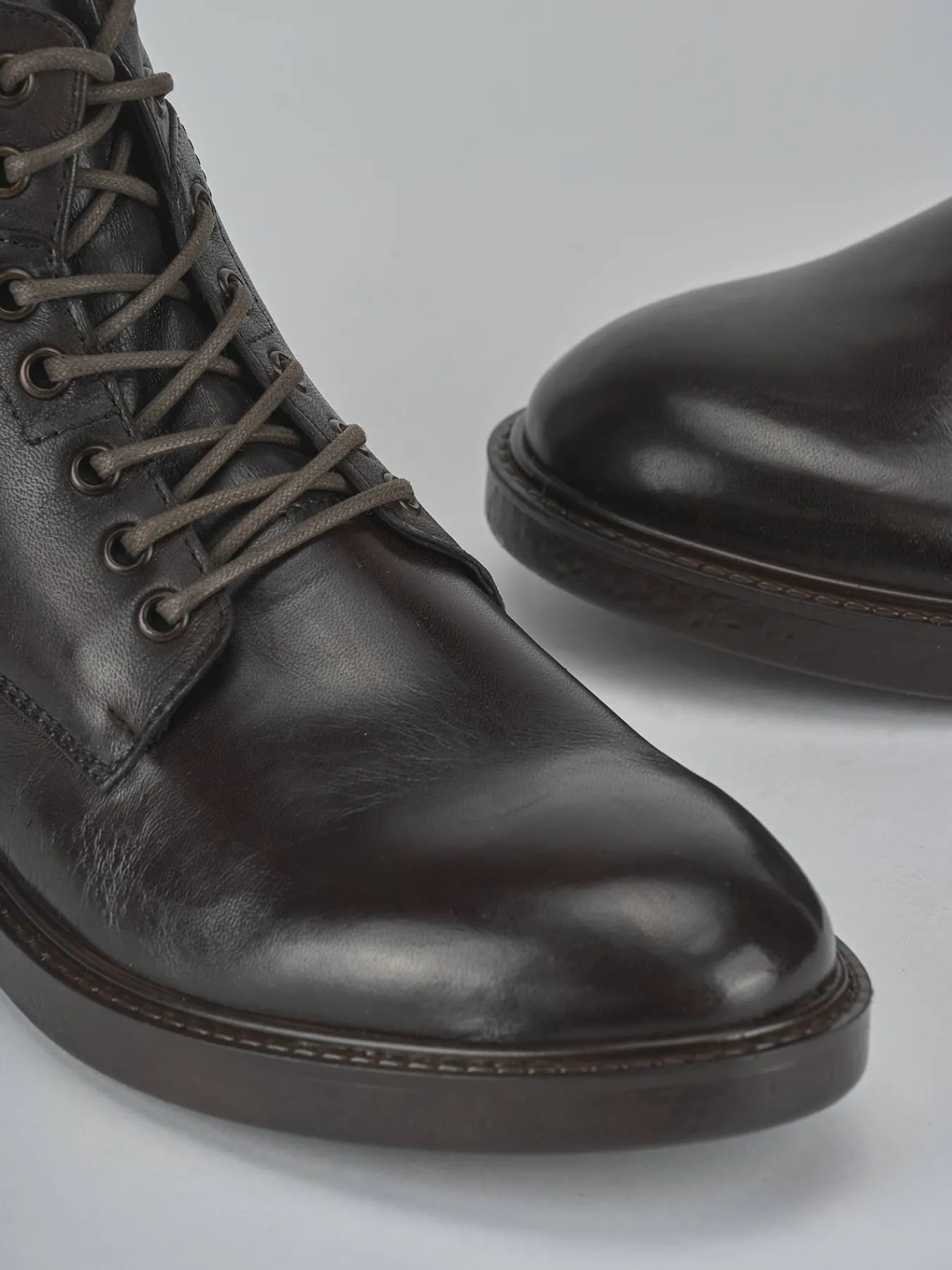 Le cuciture visibili e i dettagli come i lacci e gli occhielli in metallo conferiscono un look robusto e sofisticato.
