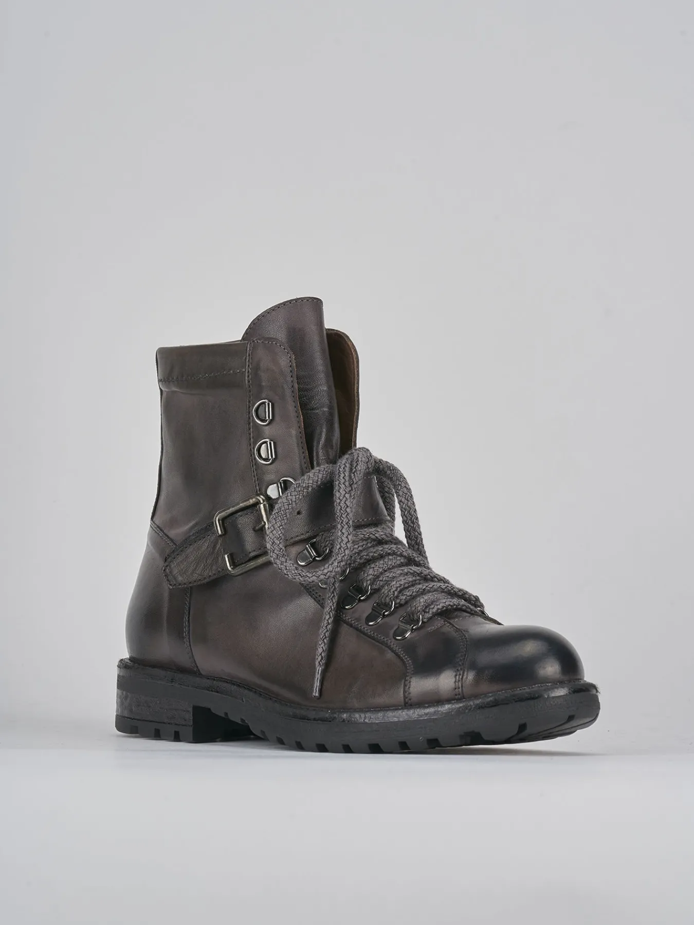 Realizzati in morbida pelle, questi anfibi presentano una punta tonda e cuciture visibili che ne esaltano l’artigianalità.