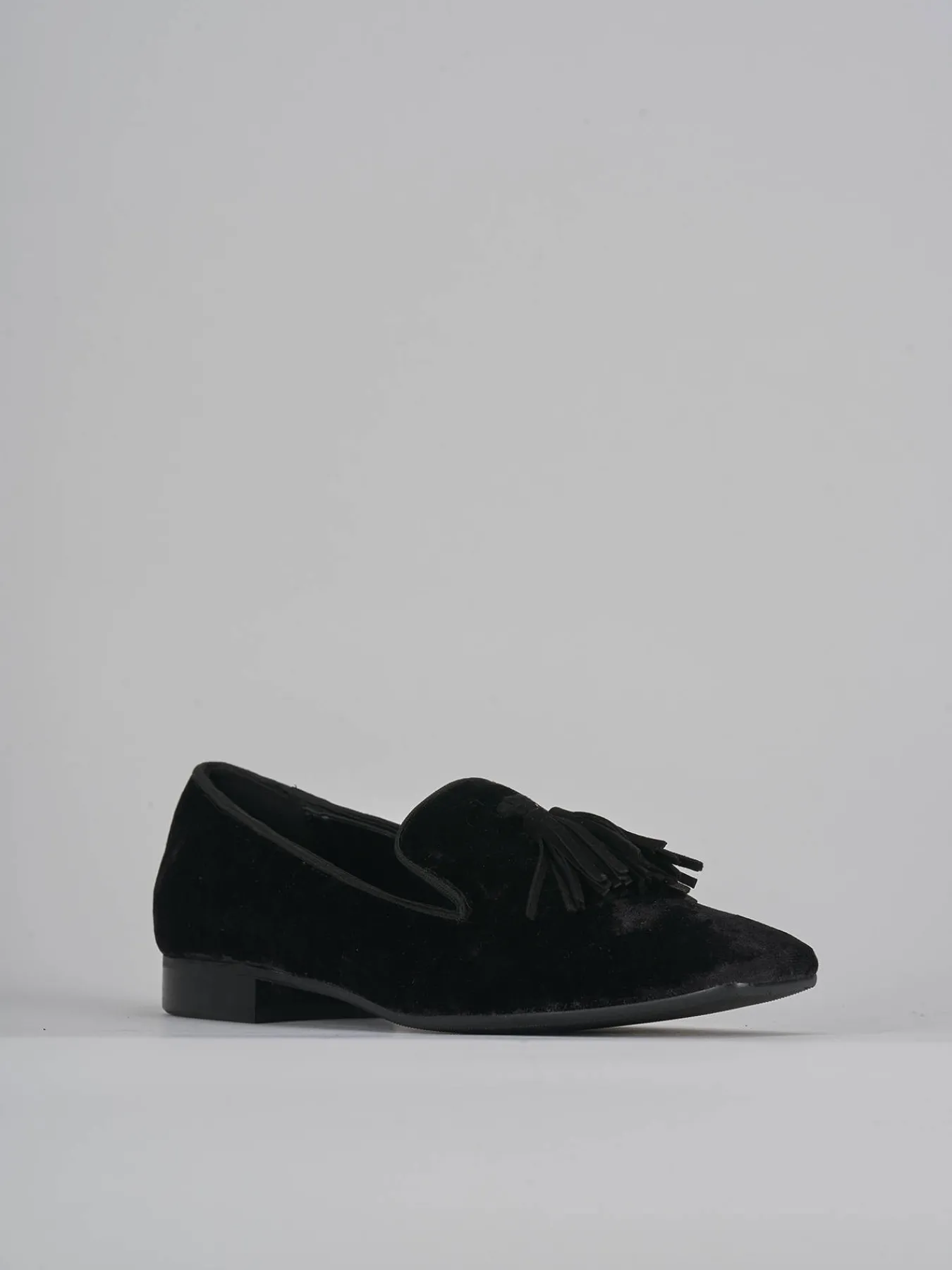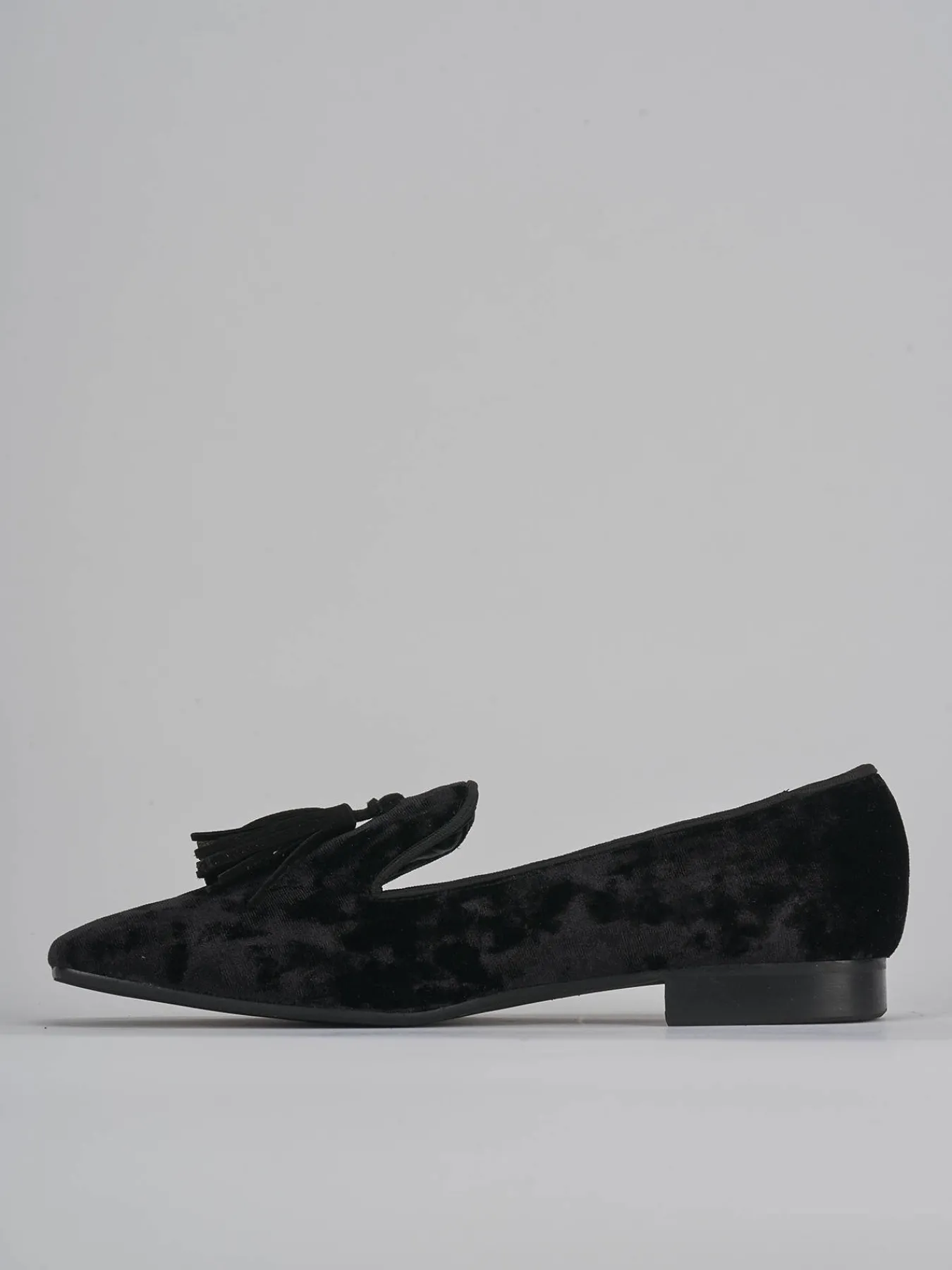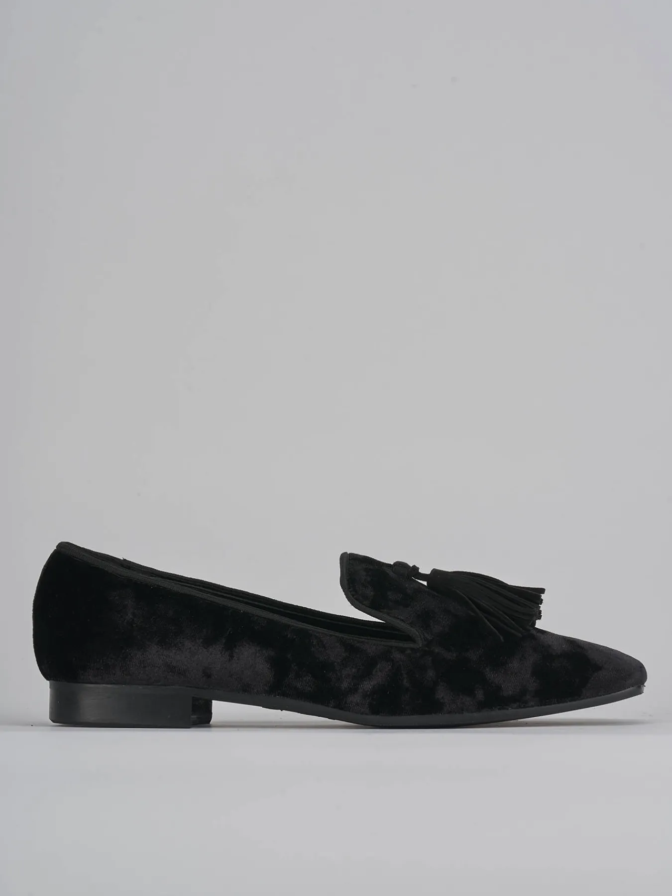 ballerina tacco 2 cm fondo in leggera gomma e soletto interno in vera pelle. tomaia in morbida pelle foderata in velluto, punta leggermente squadrata e nappine. perfetto per un look casual ma chic.