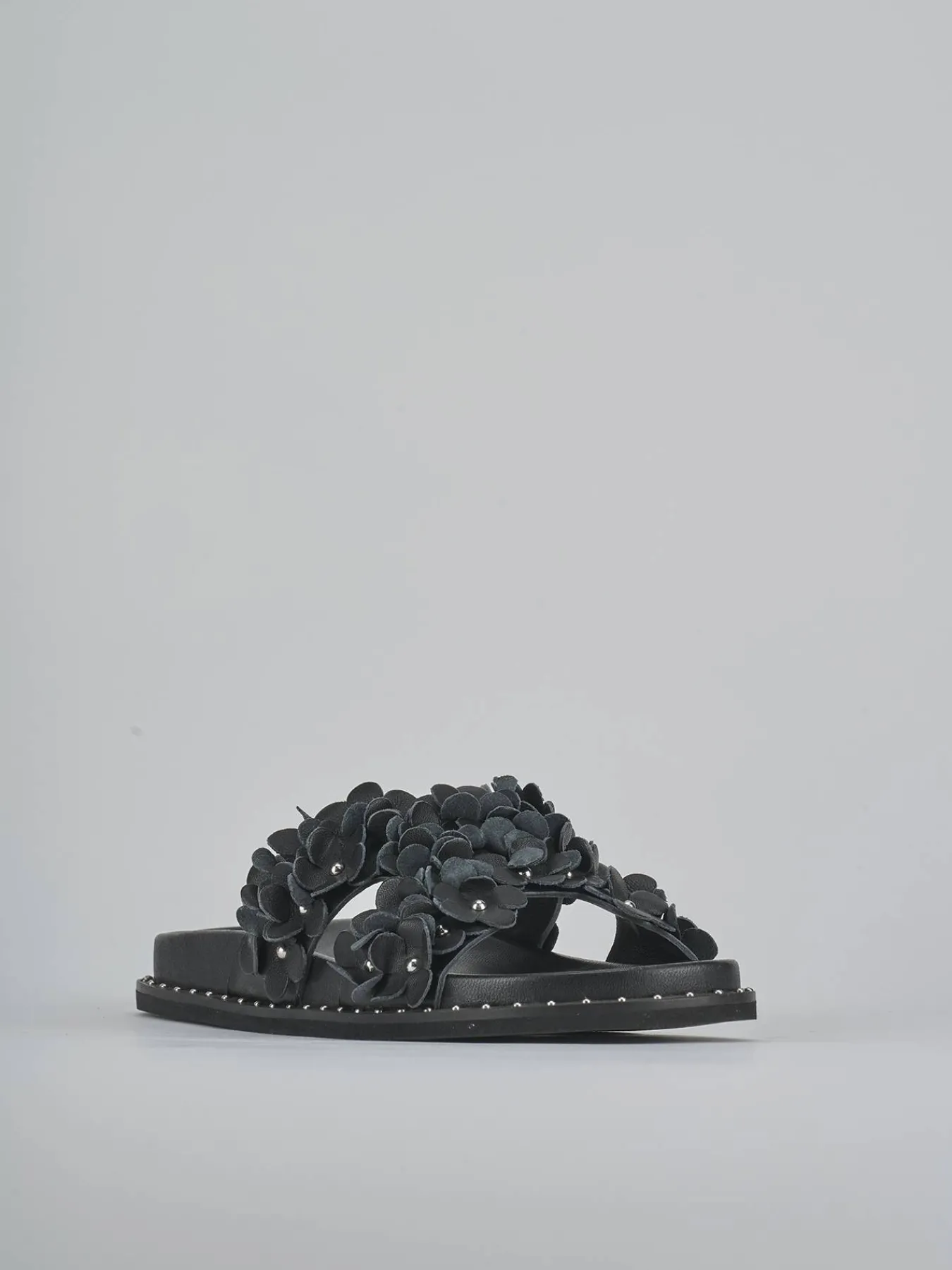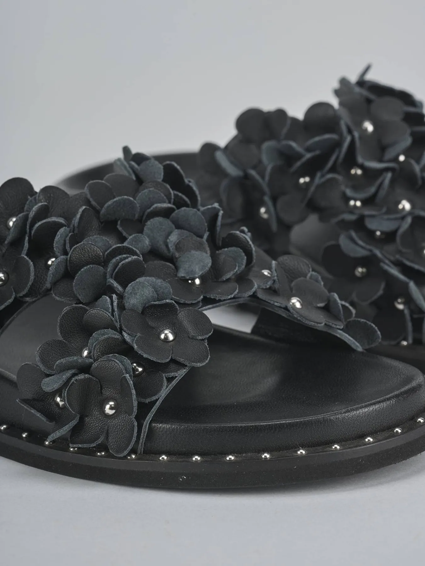 Le particolarissime applicazioni con fiori borchiati le rendono uniche e sofisticate.