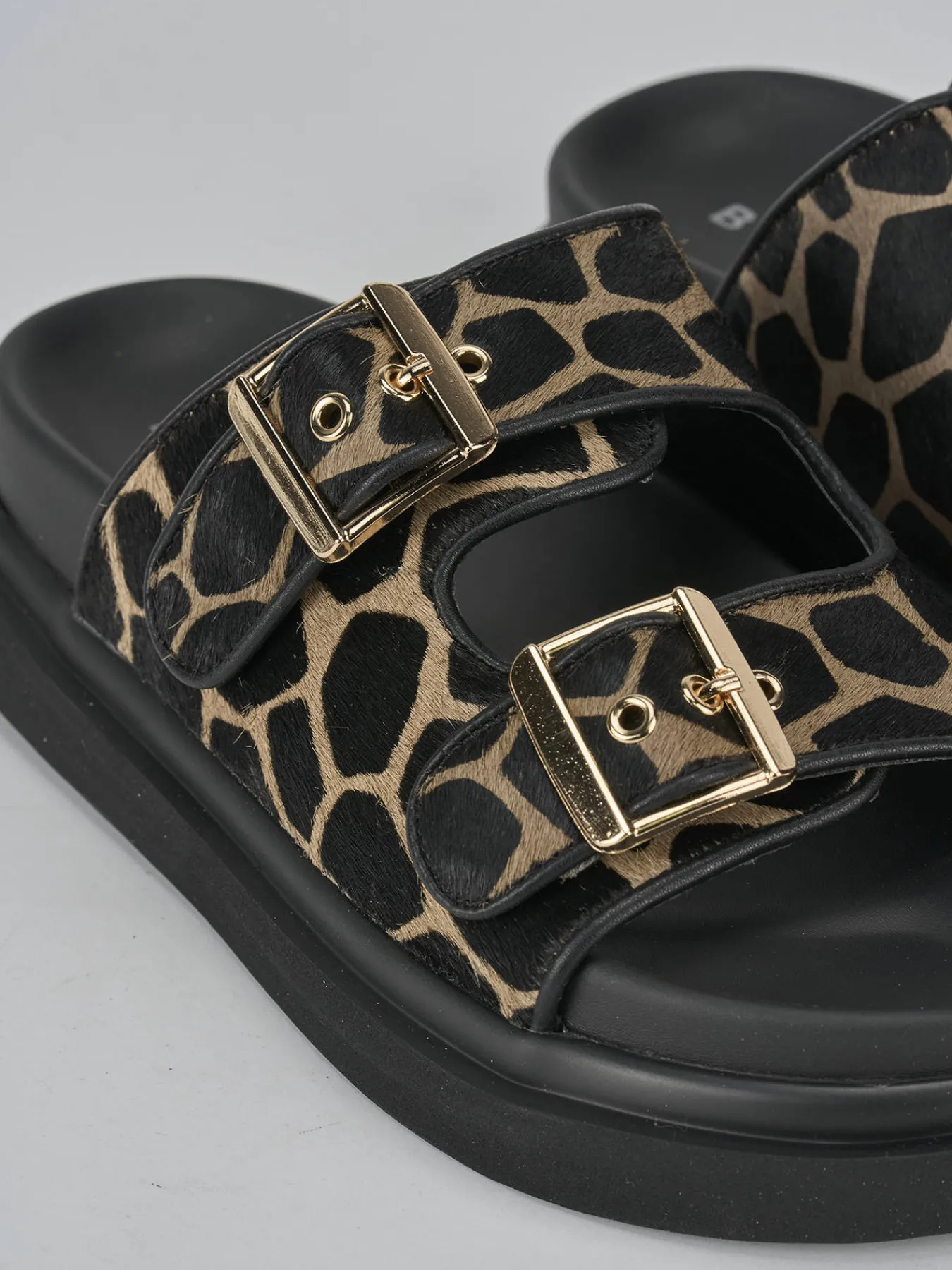 Realizzate in pelle multicolor, presentano una tomaia in morbida pelle foderata cavallino con un elegante motivo giraffa.